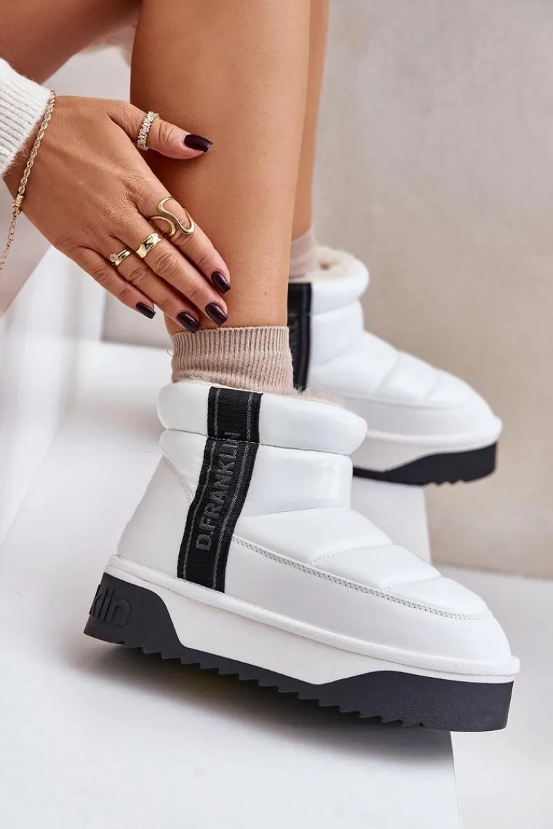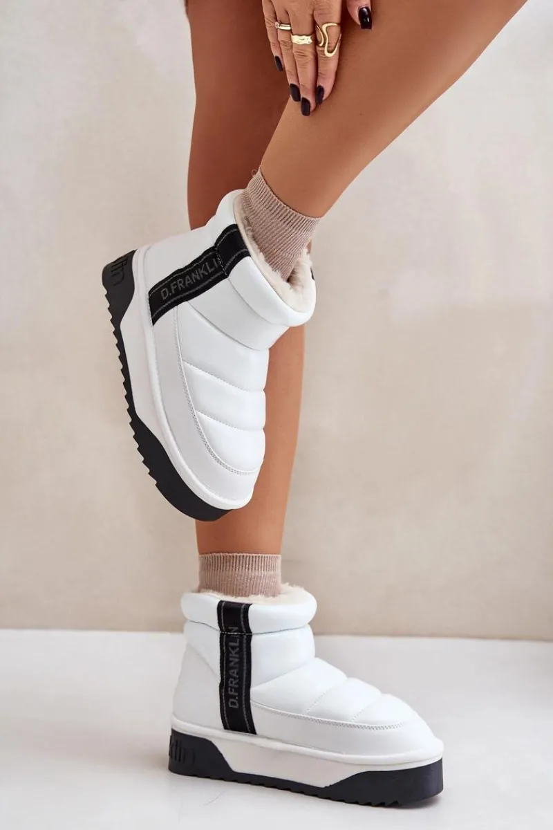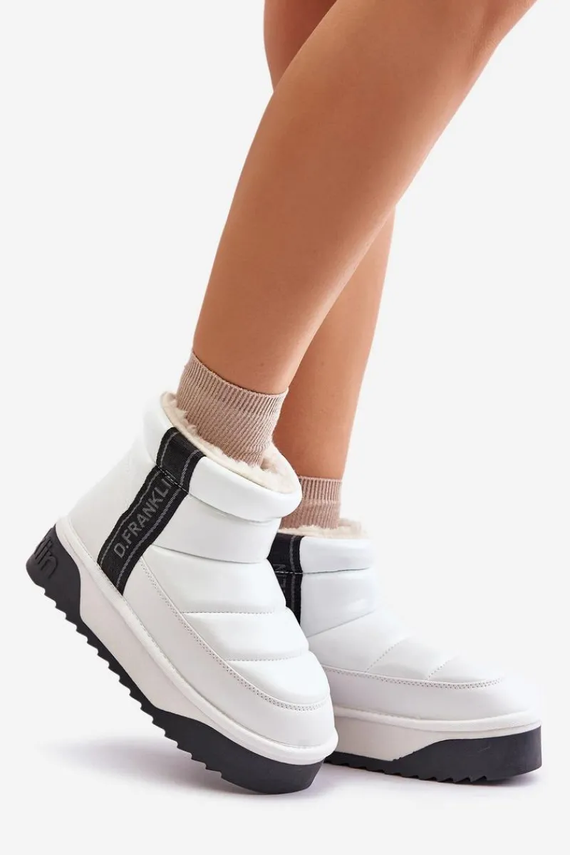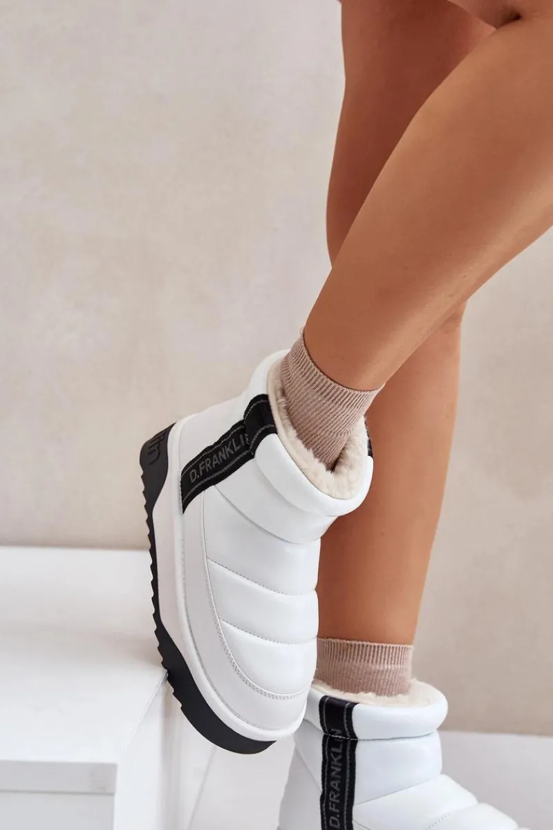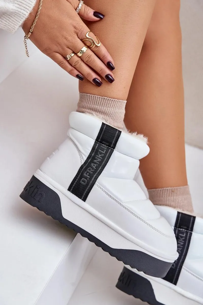 Damskie śniegowce marki D.Franklin charakteryzują się pikowanym wykończeniem. Buty te zostały wykonane z materiałów o wysokiej jakości, które są jednocześnie lekkie i elastyczne. Wysoka podeszwa skutecznie izoluje od zimnego podłoża, a wnętrze wyłożone grubym, syntetycznym futerkiem gwarantuje komfort i ciepło podczas zimowych dni. To elegancki model, który warto mieć! Przy wyborze rozmiaru prosimy sugerować się tabelą rozmiarów.
