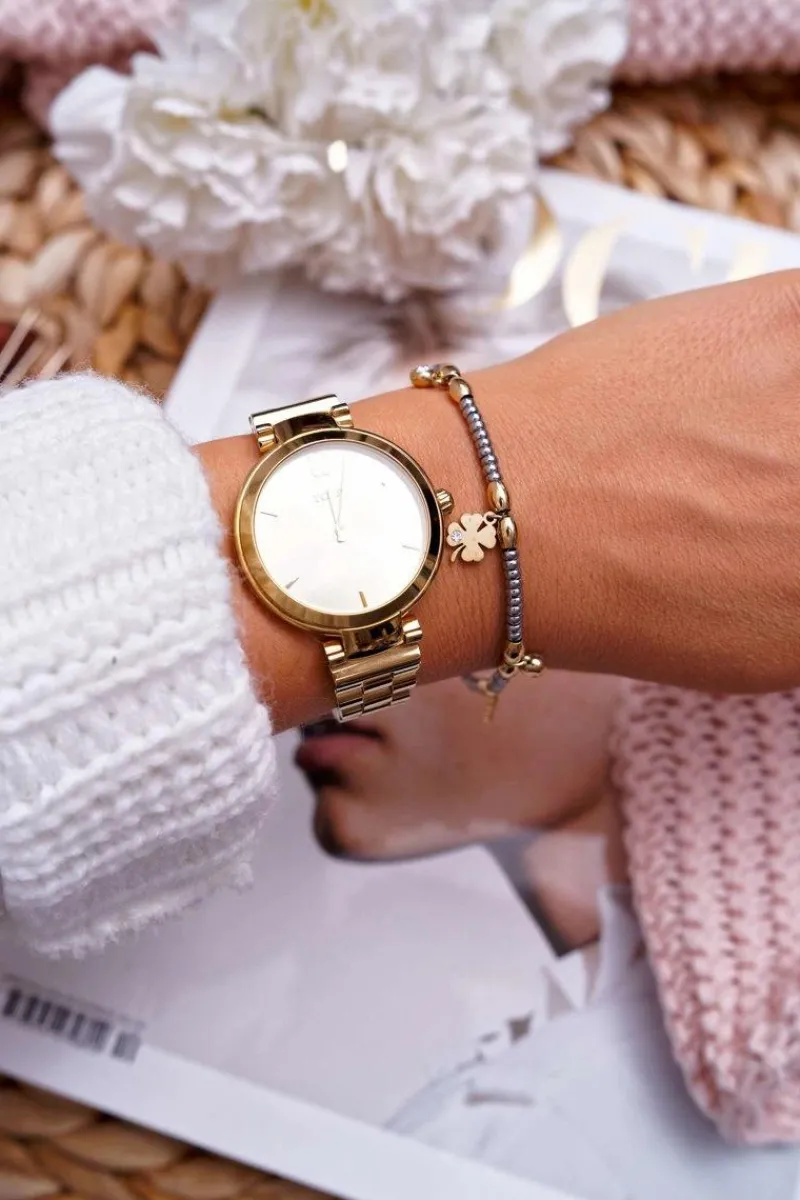 Outlet Damska Bransoleta Łańcuszek Koniczyna Złota Clover Bransoletki