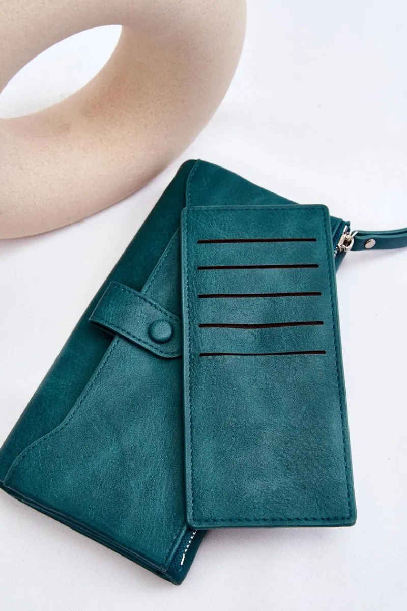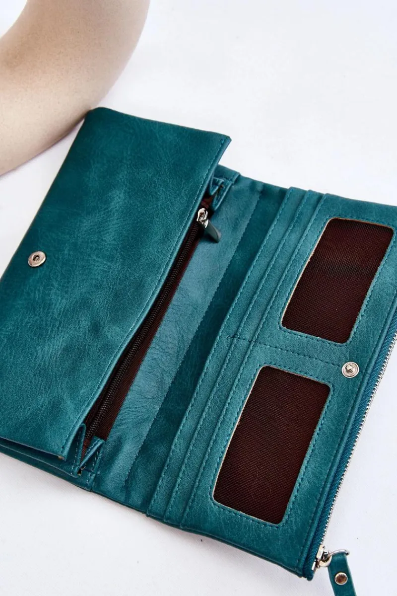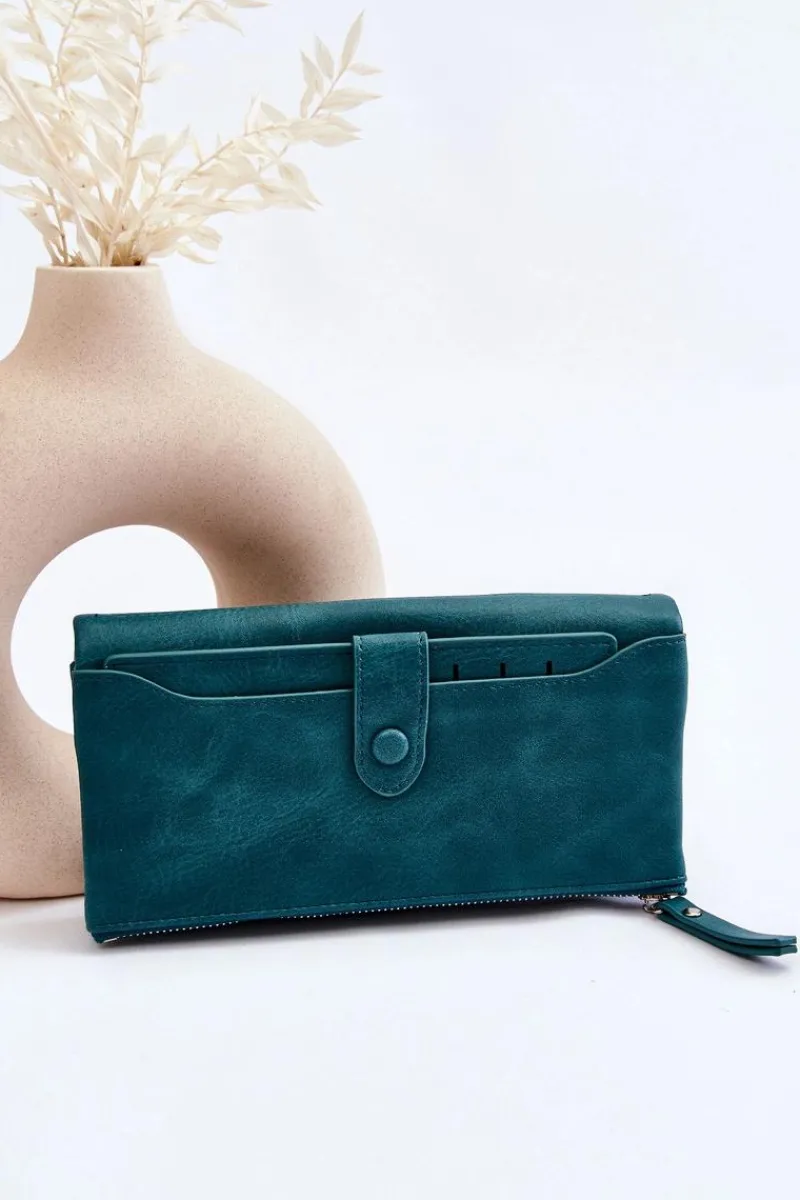 Duży, damski portfel zapinany na napy oraz zamek błyskawiczny. Został wykonany z eko skóry. W środku znajdują się otwarte komory oraz jedna zamykana na suwak. Dodatkowo także portfel zawiera wiele miejsc na wizytówki czy karty kredytowe. Na zewnątrz także znajduje się dodatkowa kieszonka zamykana na zamek błyskawiczny oraz kolejna komora zapinana na napę. Ten portfel pomieści najpotrzebniejsze rzeczy, takie jak: dokumenty czy pieniądze.