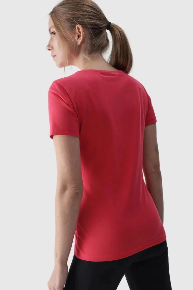 T-shirt damski idealnie sprawdzi się jako element zarówno casualowych, jak i sportowych stylizacji na co dzień. Posiada dopasowany krój slim, który przylega do ciała. Splot single jersey z jednostronną gładką powierzchnią sprawia, że koszulka jest elastyczna i komfortowa w noszeniu. Koszulka bez nadruku damska jest miękka w dotyku i dobrze się układa. Nie prześwituje oraz zapewnia trwałość i wygodę podczas całorocznego noszenia. T-shirt 4F damski jest wykonany w 95% z bawełny, dzięki czemu jest miękki, trwały i przyjemny w dotyku. Dzięki dodatkowi elastanu (5%) jest lekko rozciągliwa i wygodnie układa się na sylwetce. Okrągły dekolt jest zakończony lekkim ribowaniem.