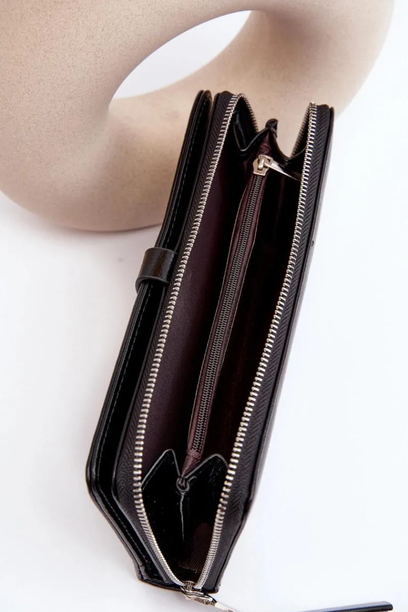 Outlet Damski Lakierowany Portfel Na Magnes Czarny Bielia Portfele