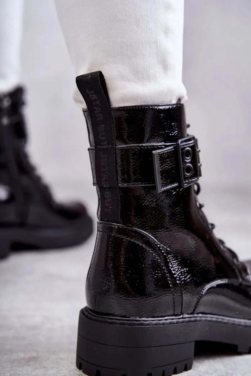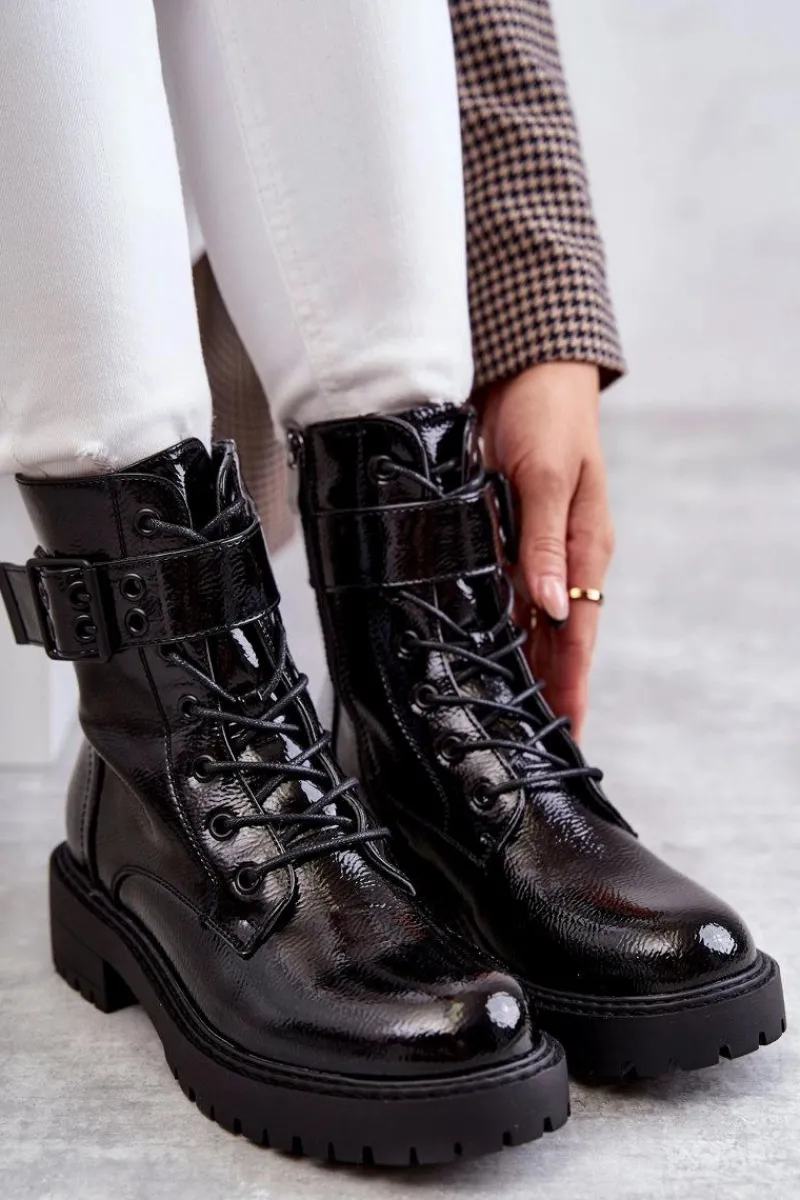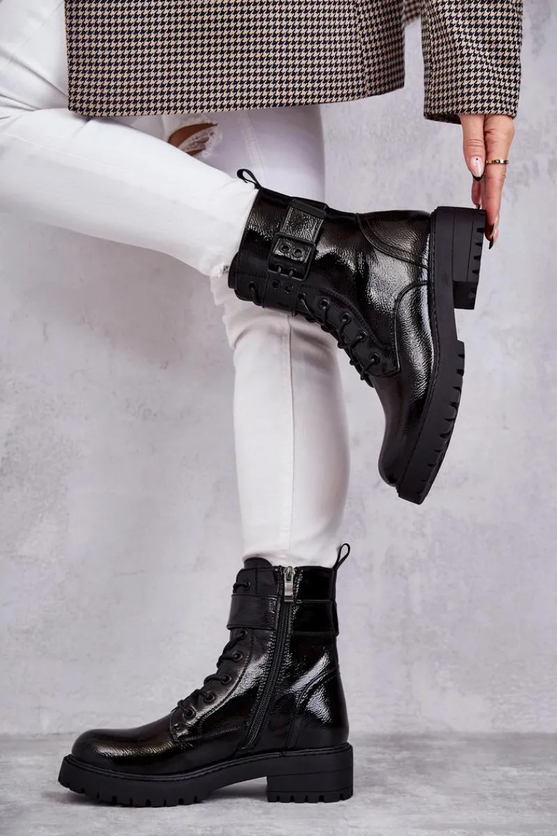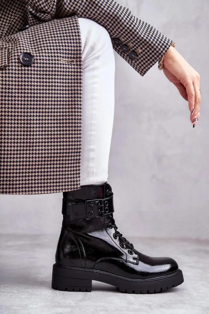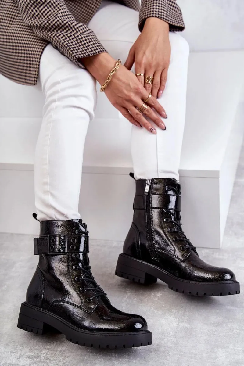 Modne botki damskie zostały wykonane z eko skóry. Posiadają suwak na boku cholewki, sznurowanie oraz klamrę z regulowanym paskiem. W środku znajduje się ocieplenie w postaci koca obuwniczego. Buty dodatkowo posiadają usztywniany zapiętek. Świetny model na jesienne, chłodne dni! Koniecznie sprawdź także pozostałe modele botków dostępne na naszej stronie! Przy wyborze rozmiaru prosimy sugerować się tabelą rozmiarów.
