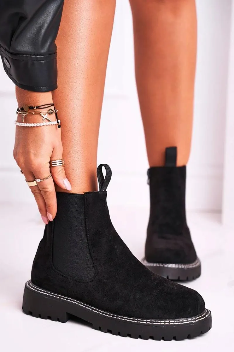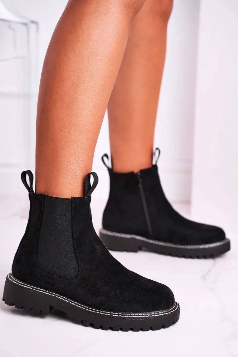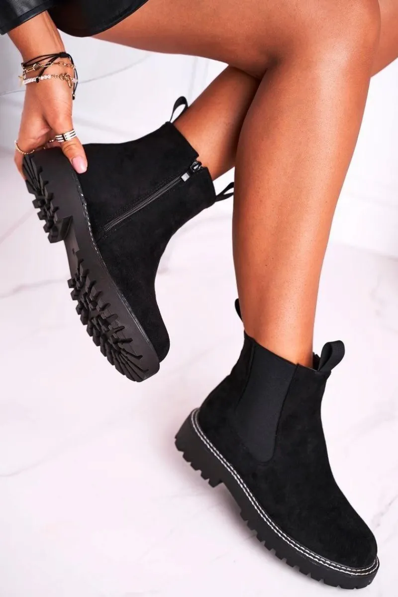 Świat mody nieustannie staje na głowie, by nas zaskoczyć. Spójrz zatem na te przepiękne botki o fasonie sztybletów! W całości wykonane z ekologicznego zamszu, wewnątrz ocieplone kocem obuwniczym z krótkim włosiem, więc o ciepło w chłodnie dni nie musisz się martwić. Wysoka cholewka z gumkami to gwarancja idealnego dopasowania a suwak po wewnętrznej stronie cholewki zapewni nam szybkie zakładanie. Przy wyborze rozmiaru prosimy sugerować się tabelą rozmiarów.