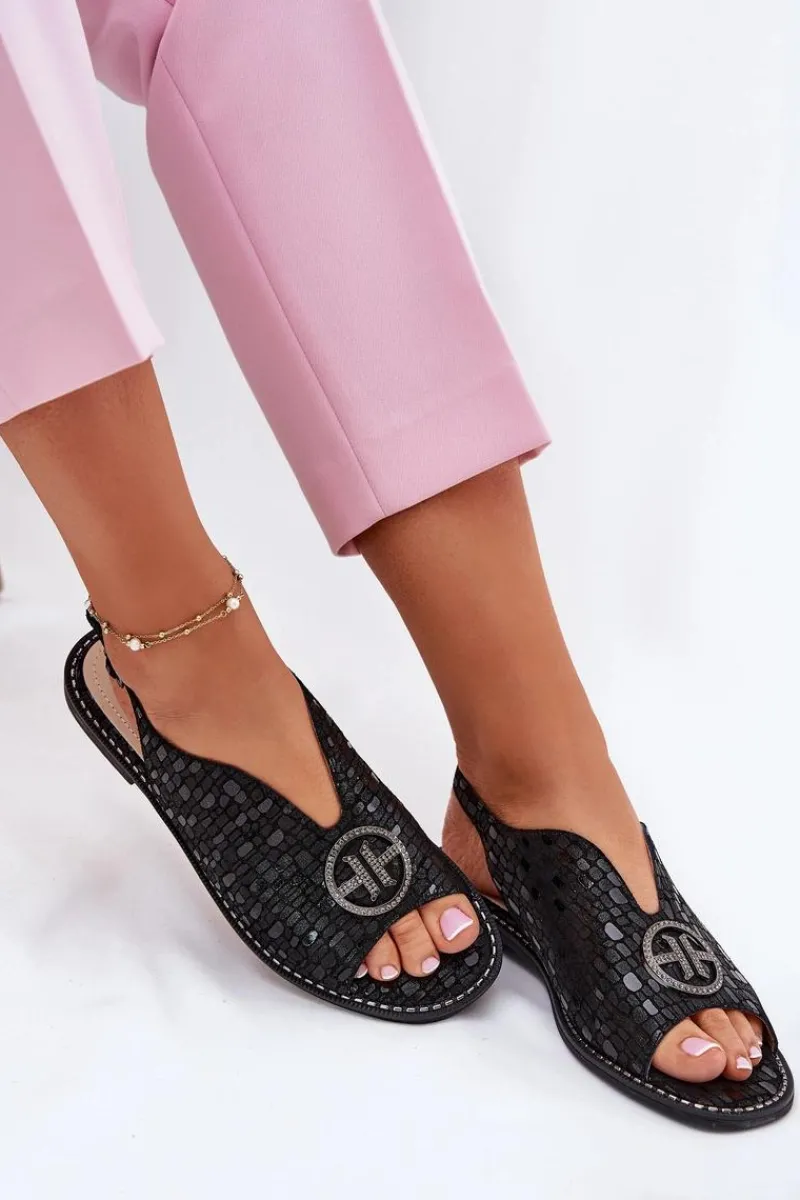 Damskie sandały z naturalnej skóry zamszowej to elegancka propozycja na letnie dni. Osadzone na płaskim obcasie, zapewniają wygodę i komfort przez cały dzień. Zapinane na sprzączkę, pozwalają na idealne dopasowanie do stopy. Z przodu znajduje się subtelna ozdoba, która nadaje im wyjątkowego charakteru. Skórzana wkładka gwarantuje dodatkową wygodę, czyniąc te sandały doskonałym wyborem do eleganckich letnich stylizacji. Przy wyborze rozmiaru prosimy kierować się tabelą rozmiarów.