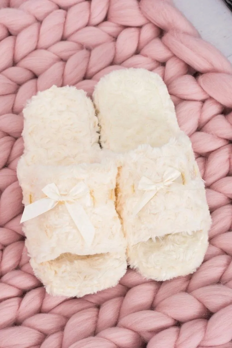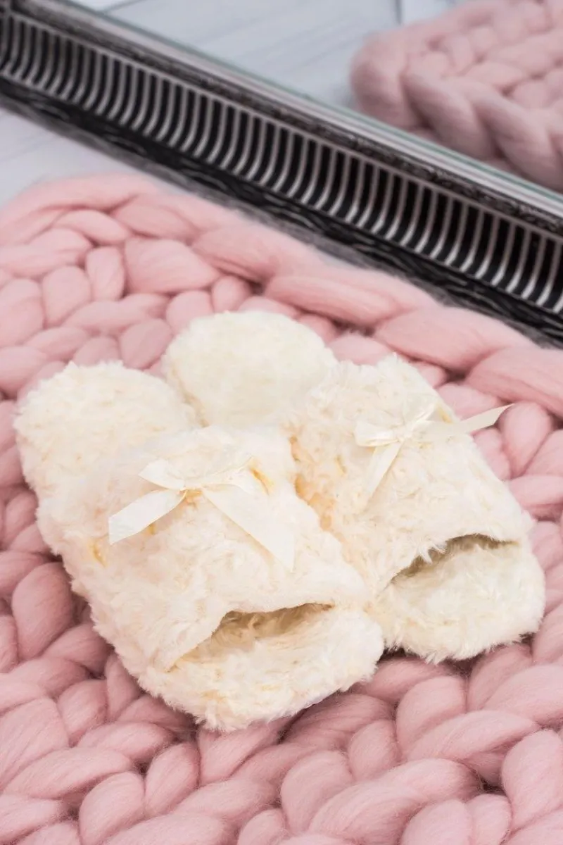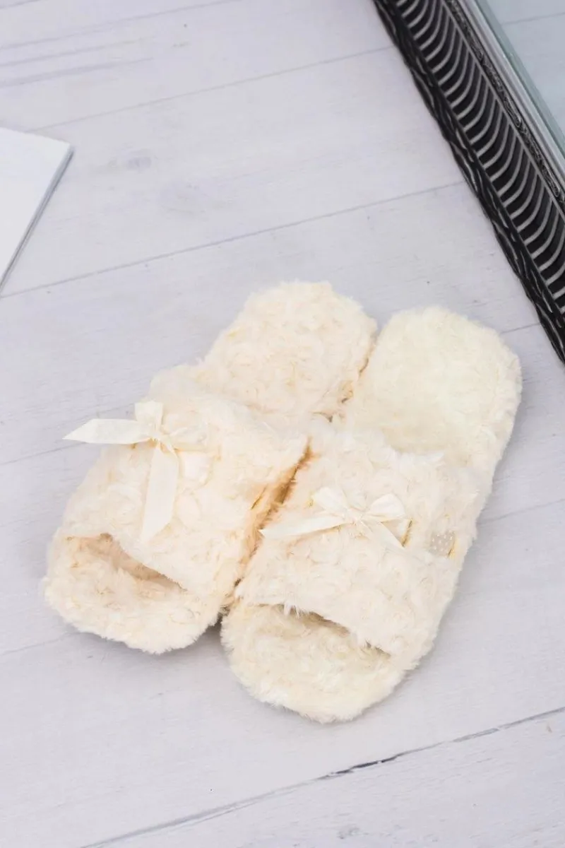 Outlet Damskie Klapki Domowe Beżowe Papcie ze Wstążką Damskie Kapcie Klasyczne