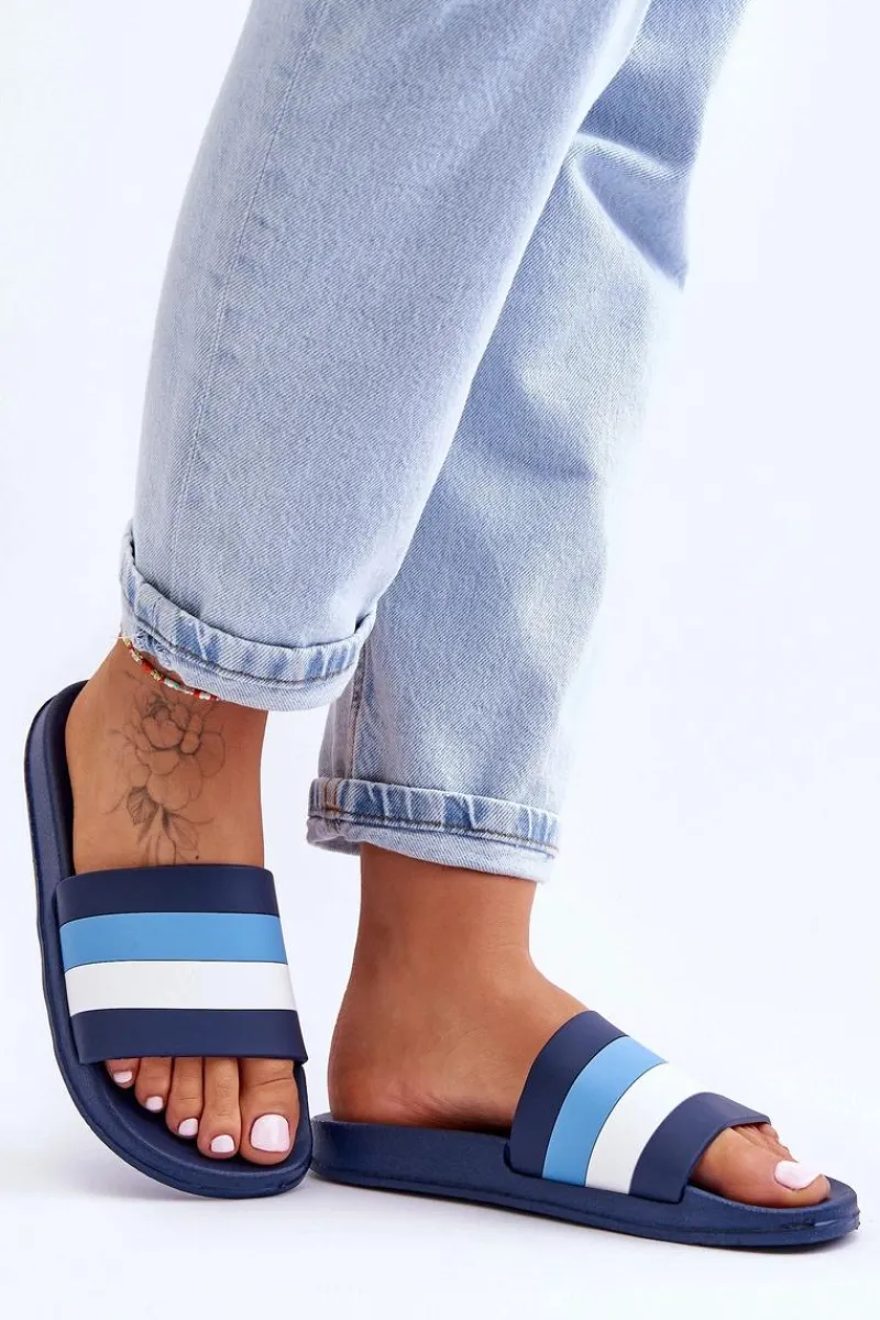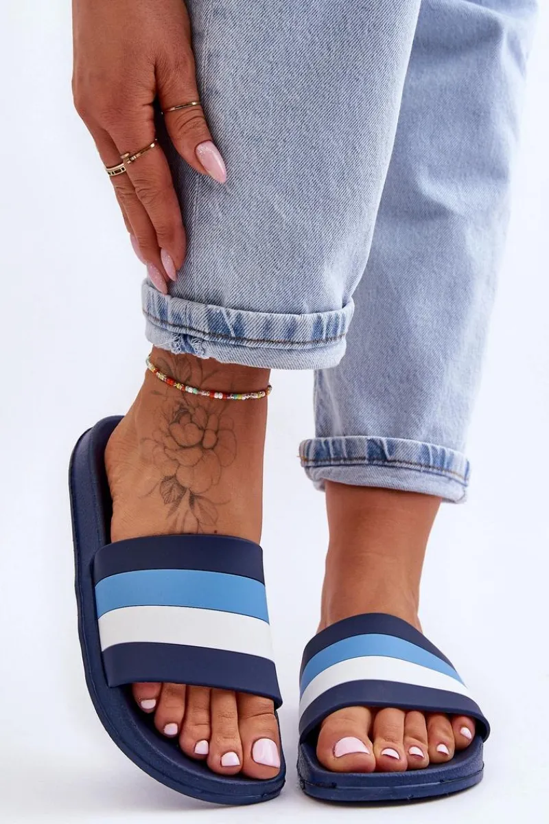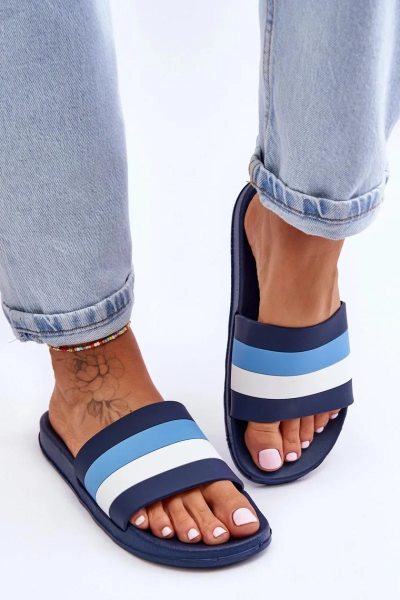 Te klasyczne klapki zostały wykonane z wierzchu z gumowego tworzywa, natomiast wkładka oraz podeszwa z piankowego tworzywa. Na paseczku znajdują się paski. Model ten został osadzony na delikatnej platformie. Te klapki świetnie sprawdzą się także na basen czy plażę. Koniecznie sprawdź także pozostałe modele klapek! Przy wyborze rozmiaru prosimy sugerować się tabelą rozmiarów.