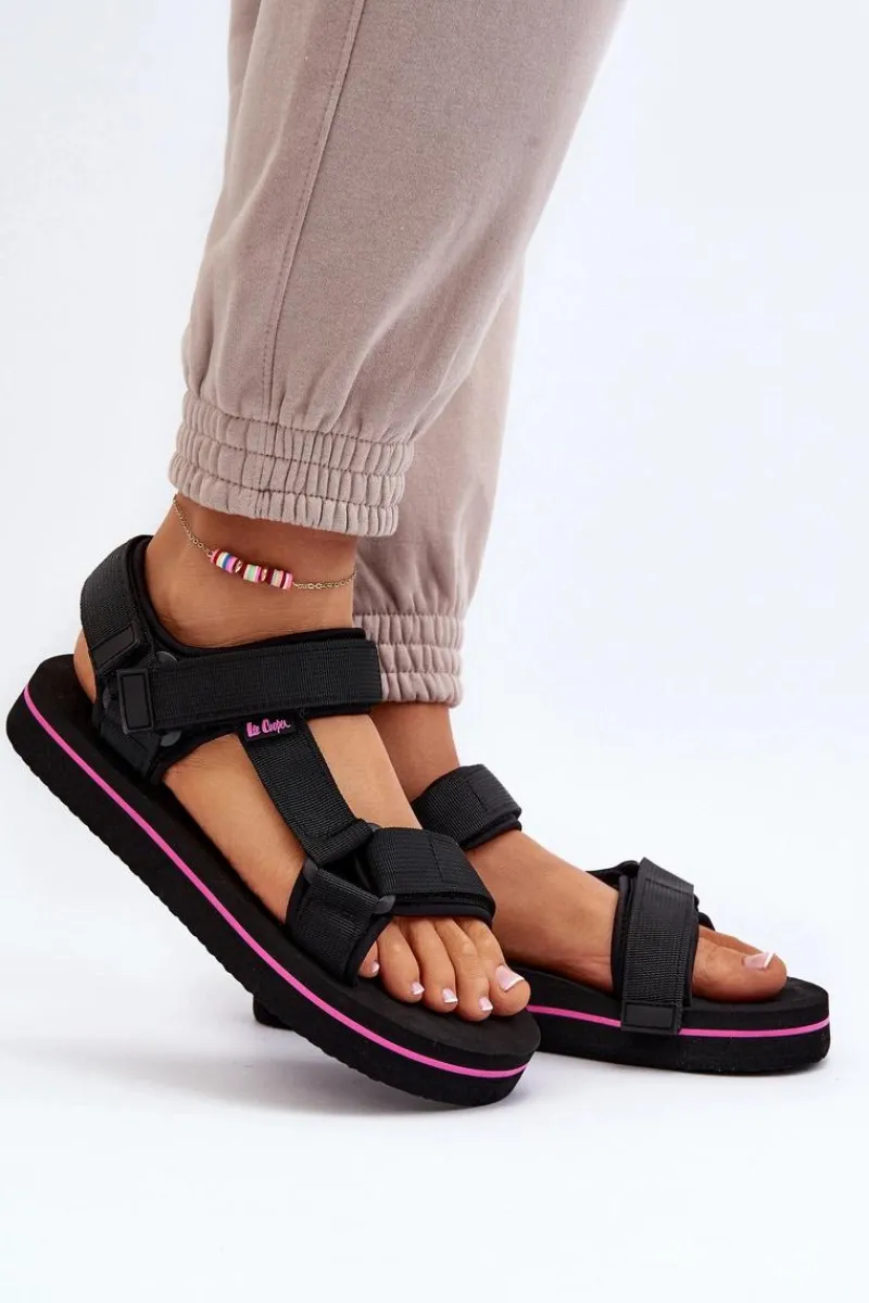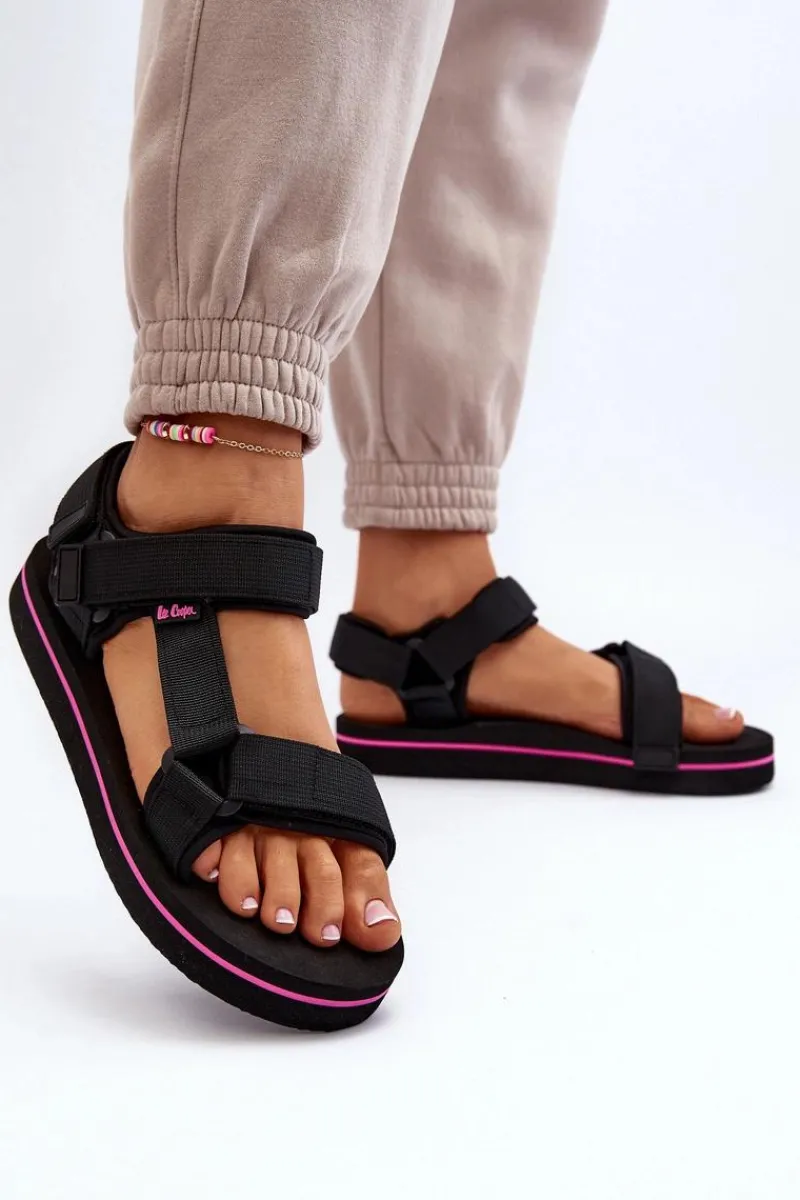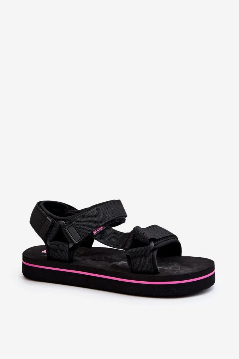 Sandały damskie wykonane z materiału tekstylnego. Osadzone na piankowej platformie. Odpowiednie dopasowanie zapewnia zapinanie na rzepy. Sandały w sportowym stylu to doskonały wybór dla tych, którzy cenią sobie wygodę i funkcjonalność. Ten modny fason koniecznie powinien znaleźć się w Twojej letniej garderobie! Przy wyborze rozmiaru prosimy sugerować się tabelą rozmiarów.