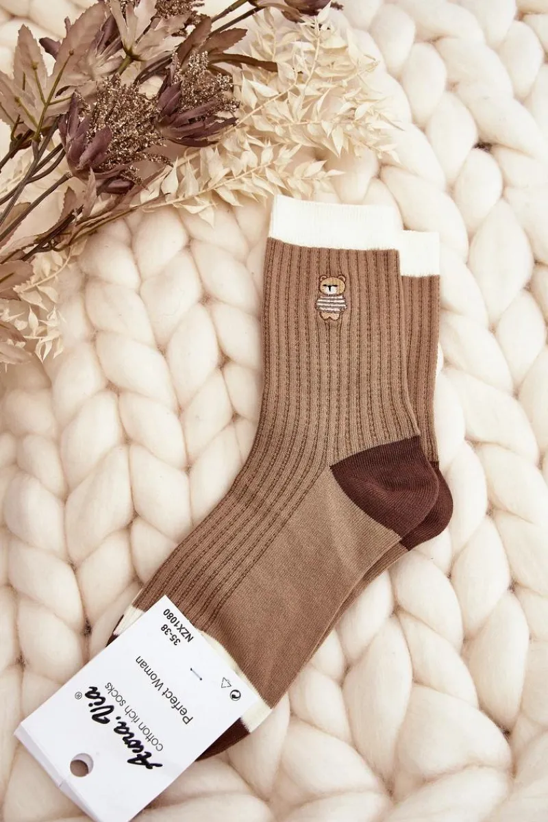 Outlet Damskie Skarpety Z Misiem – Jasny Brąz Skarpetki|Skarpetki