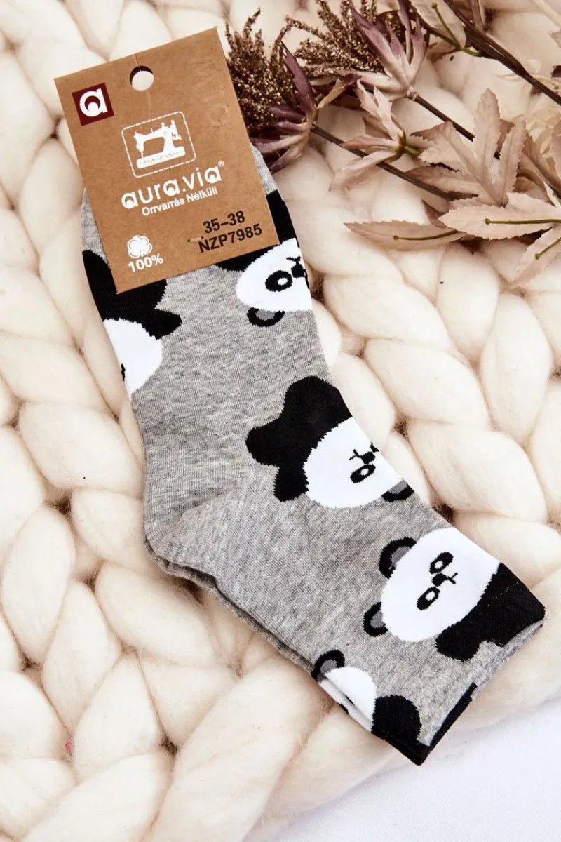 Outlet Damskie Śmieszne Skarpety Zwierzęcy Wzór Pandy Szare Skarpetki|Skarpetki