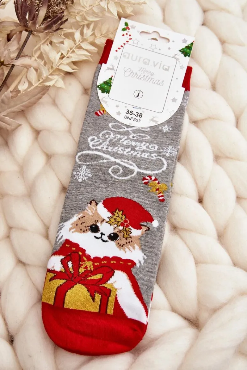 Skarpetki damskie ze świątecznymi wzorami. Wykonane głównie z wysokiej jakości bawełny. Idealne na zimowe dni! Co więcej, jeżeli szukasz pomysłu na prezent dla bliskiej osoby — nie czekaj dłużej — te skarpetki będą idealne!