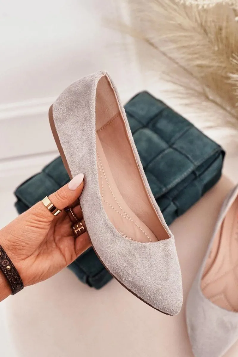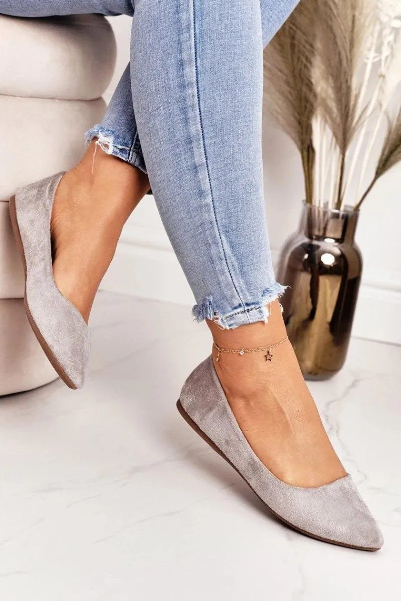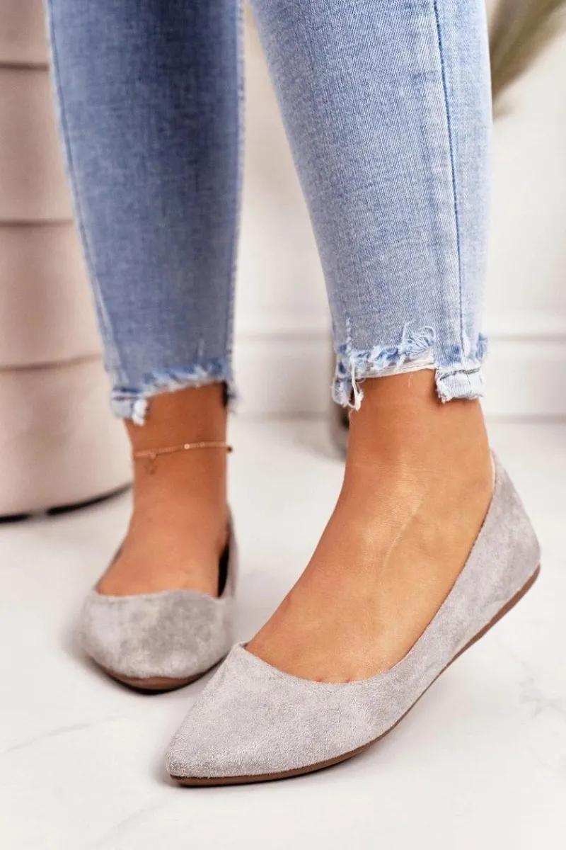 Outlet Delikatne Baleriny W Szpic Zamszowe Szare Dermeno Damskie Baleriny Klasyczne