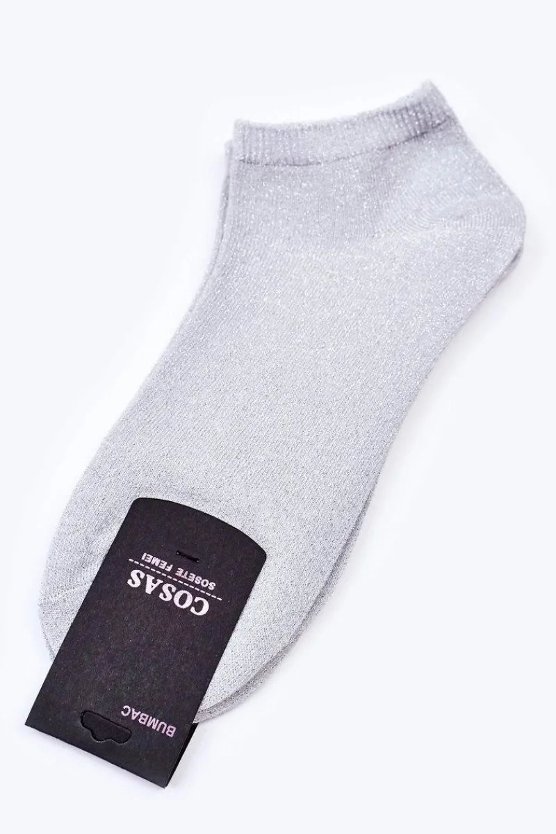Miękkie, bawełniane skarpetki damskie przeszyte srebrną nitką. Skład: 95% bawełna, 5% spandex. Spraw prezent sobie lub komuś bliskiemu!