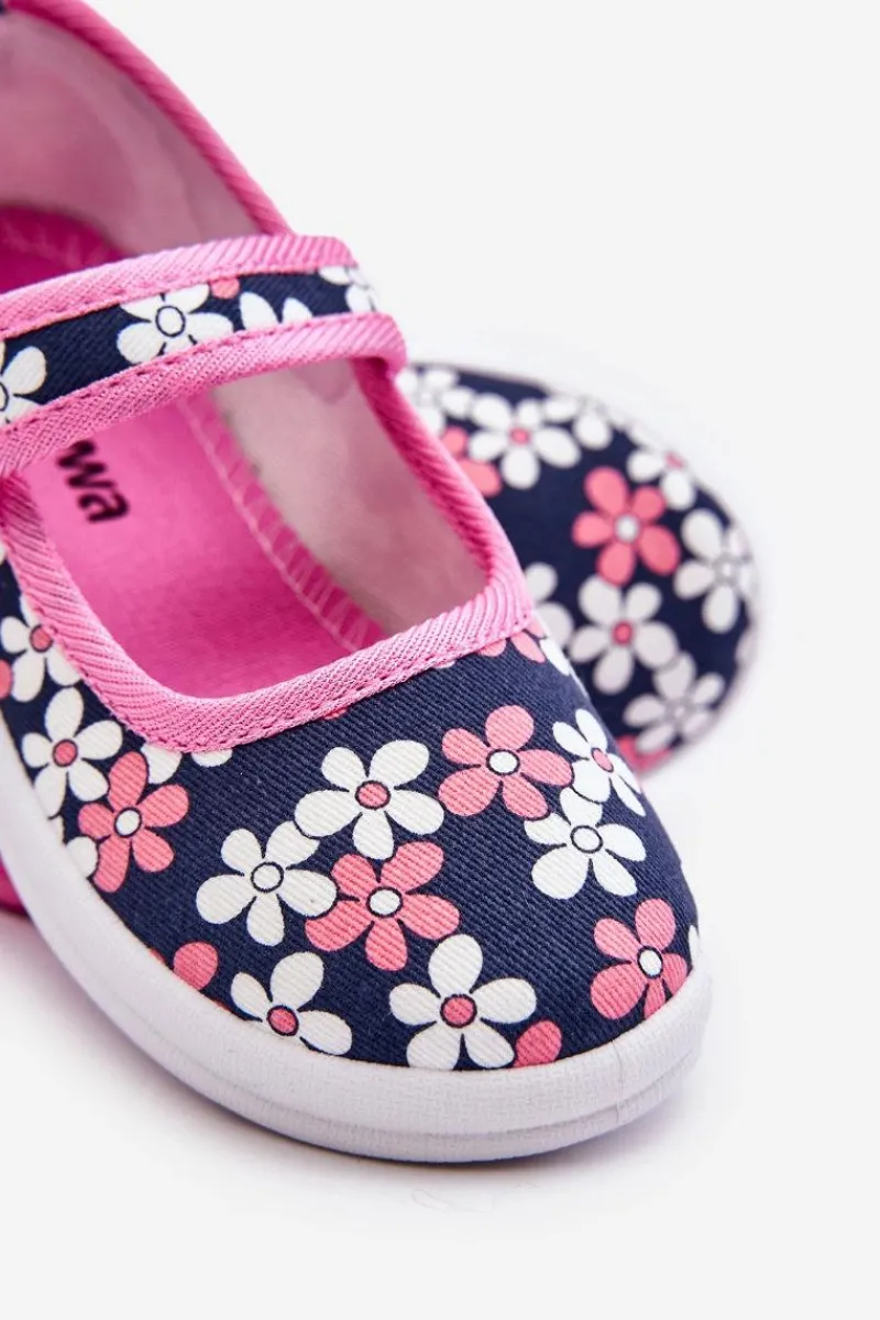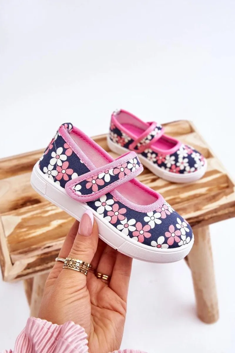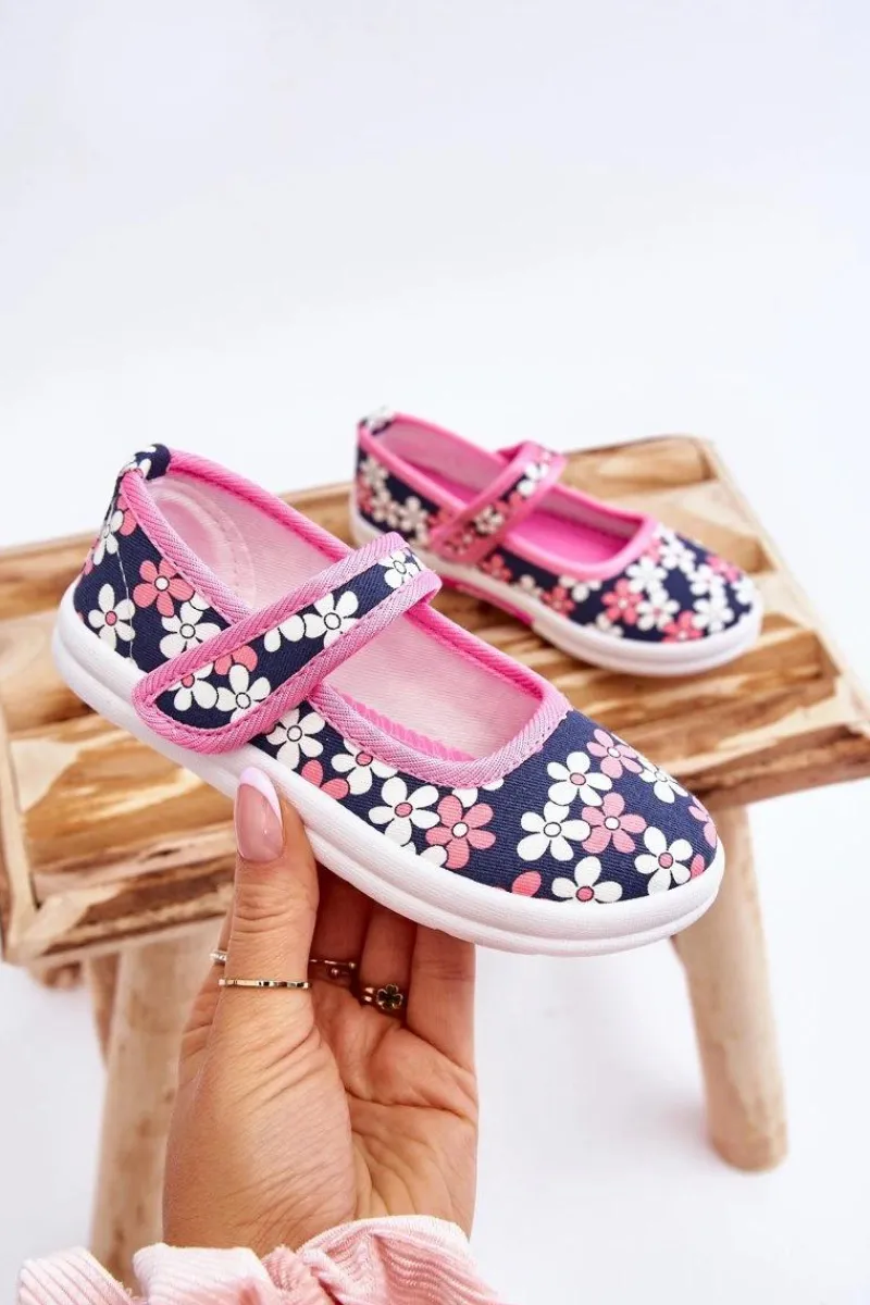 Modne, dziecięce balerinki zostały wykonane z materiału tekstylnego. Buty te posiadają klasyczny rzep. Uroczy model w kwiatuszki. Wkładka została wykonana z materiału tekstylnego. Balerinki posiadają delikatną platformę. Świetnie sprawdzą się jako zamiennik papci do szkoły czy po domu. Rozmiary 19-24 mają inną podeszwę niż rozmiary 25-30. Przy wyborze rozmiaru prosimy sugerować się tabelą rozmiarów.