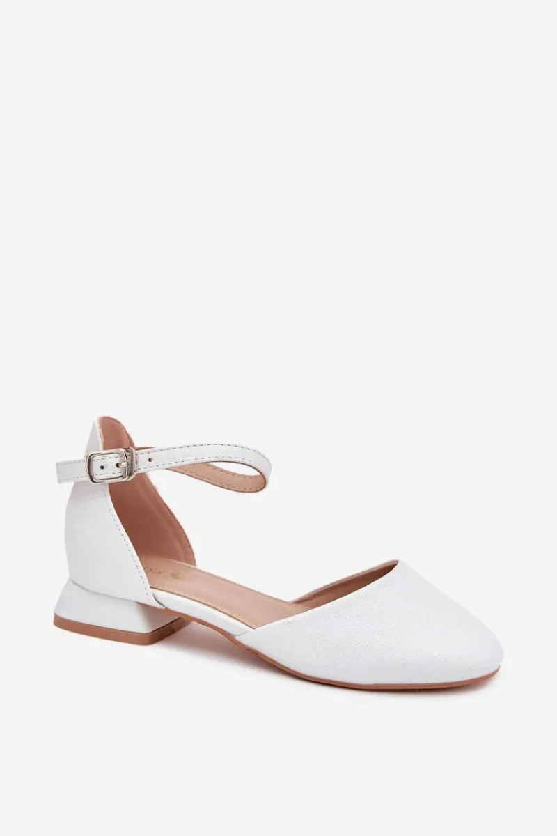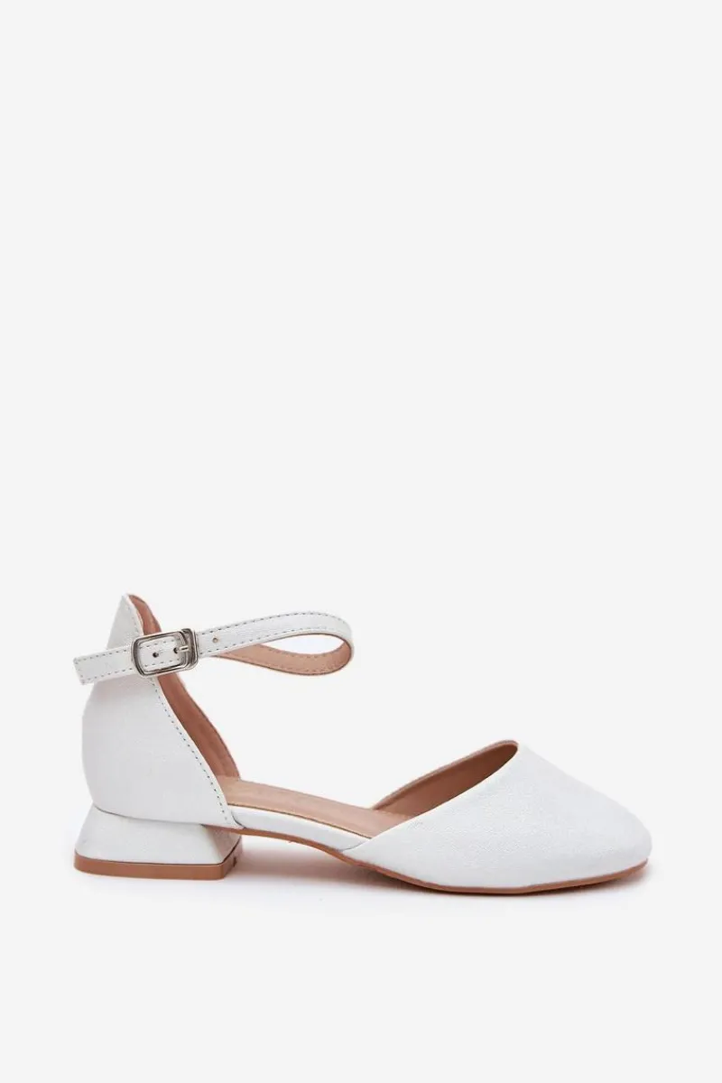 Piękne, dziewczęce sandałki w formie czółenek na niskim obcasie. Model ten został wykonany z eko skóry. Sandałki są zapinane na regulowany pasek ze sprzączką. Dodatkowo zapiętek jest usztywniany, co pozwoli na odpowiednią stabilizację stopy. Idealne obuwie do sukienki na ważną uroczystość np.: komunię. Przy wyborze rozmiaru prosimy sugerować się tabelą rozmiarów.