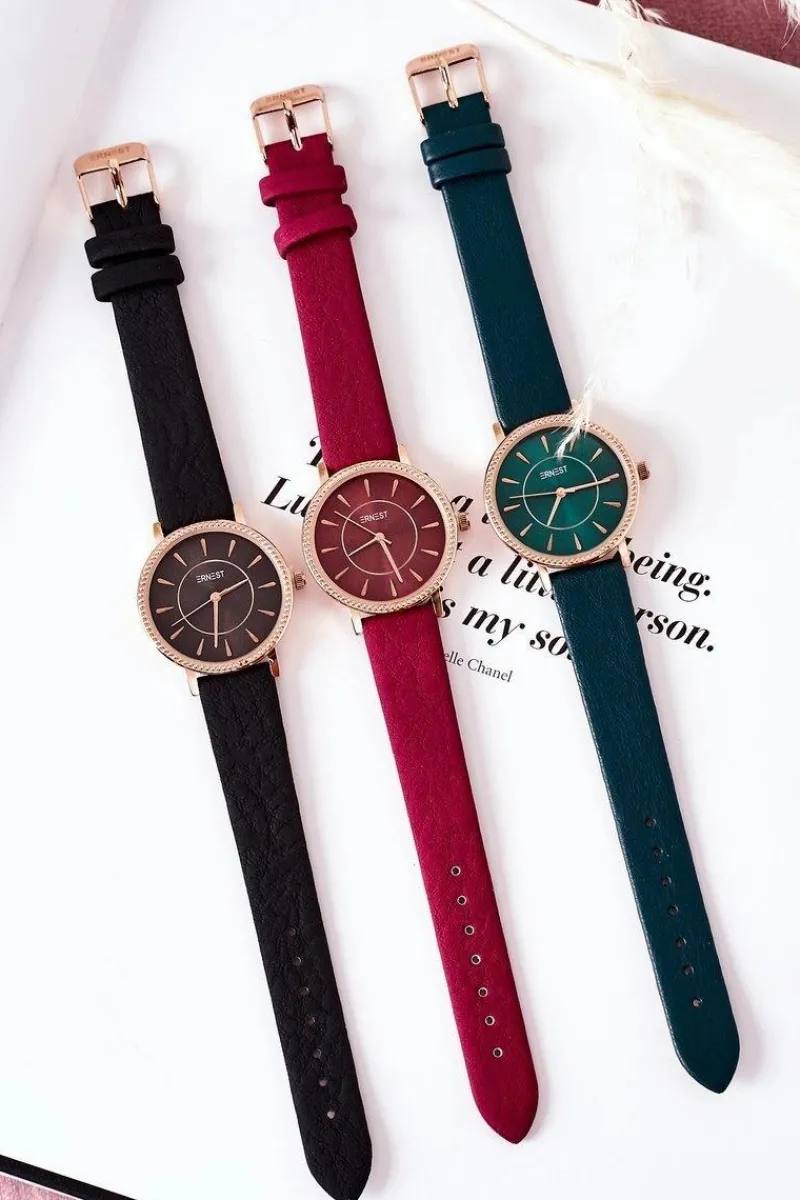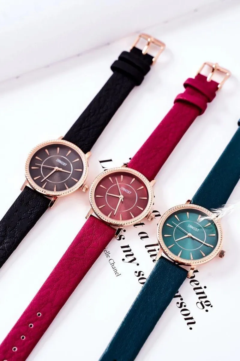 Piękny zegarek marki ERNEST. Tarcza zegarka wykonana jest ze stali nierdzewnej, a pasek ze skóry ekologicznej. Zegarek nie zawiera niklu.