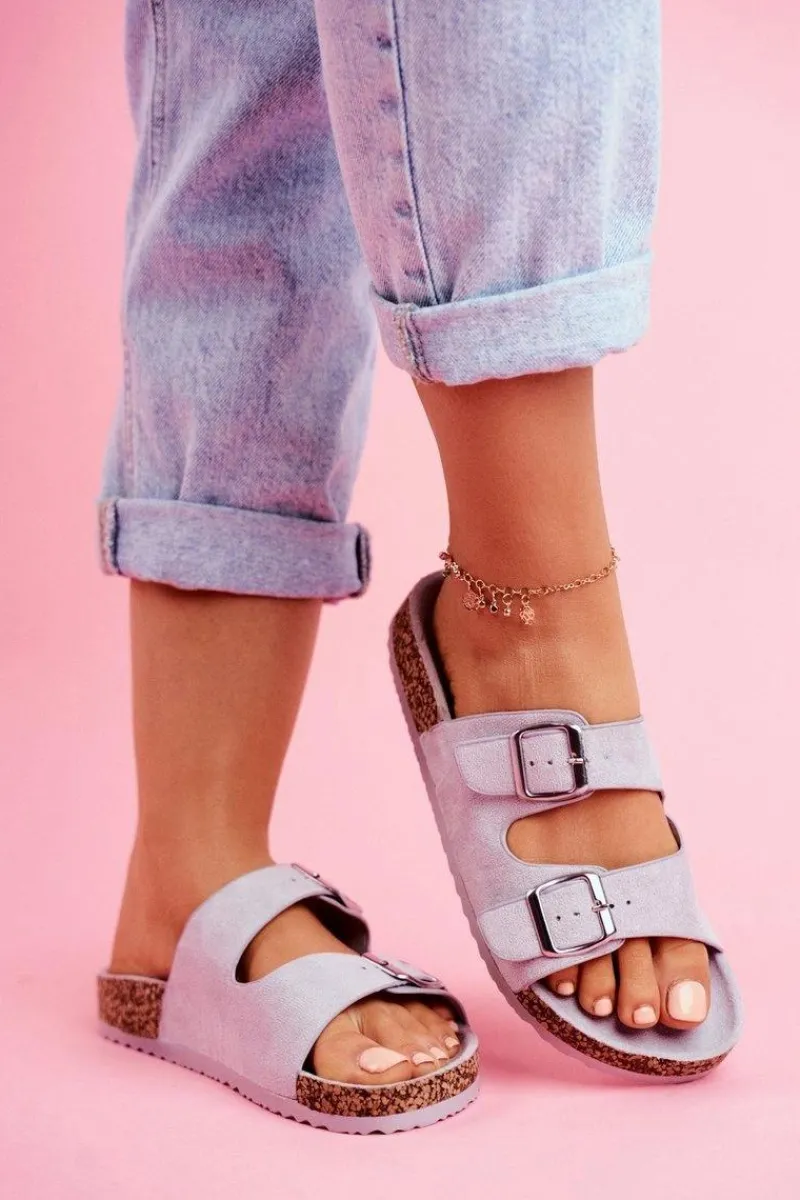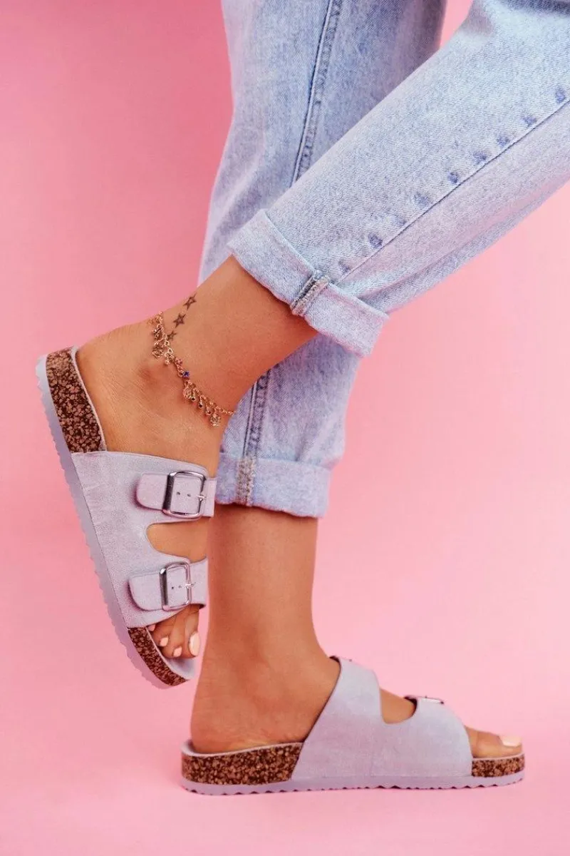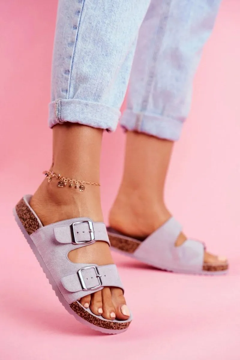 Outlet Evento Damskie Klapki Na Korku Z Klamrami Szare Si Senor