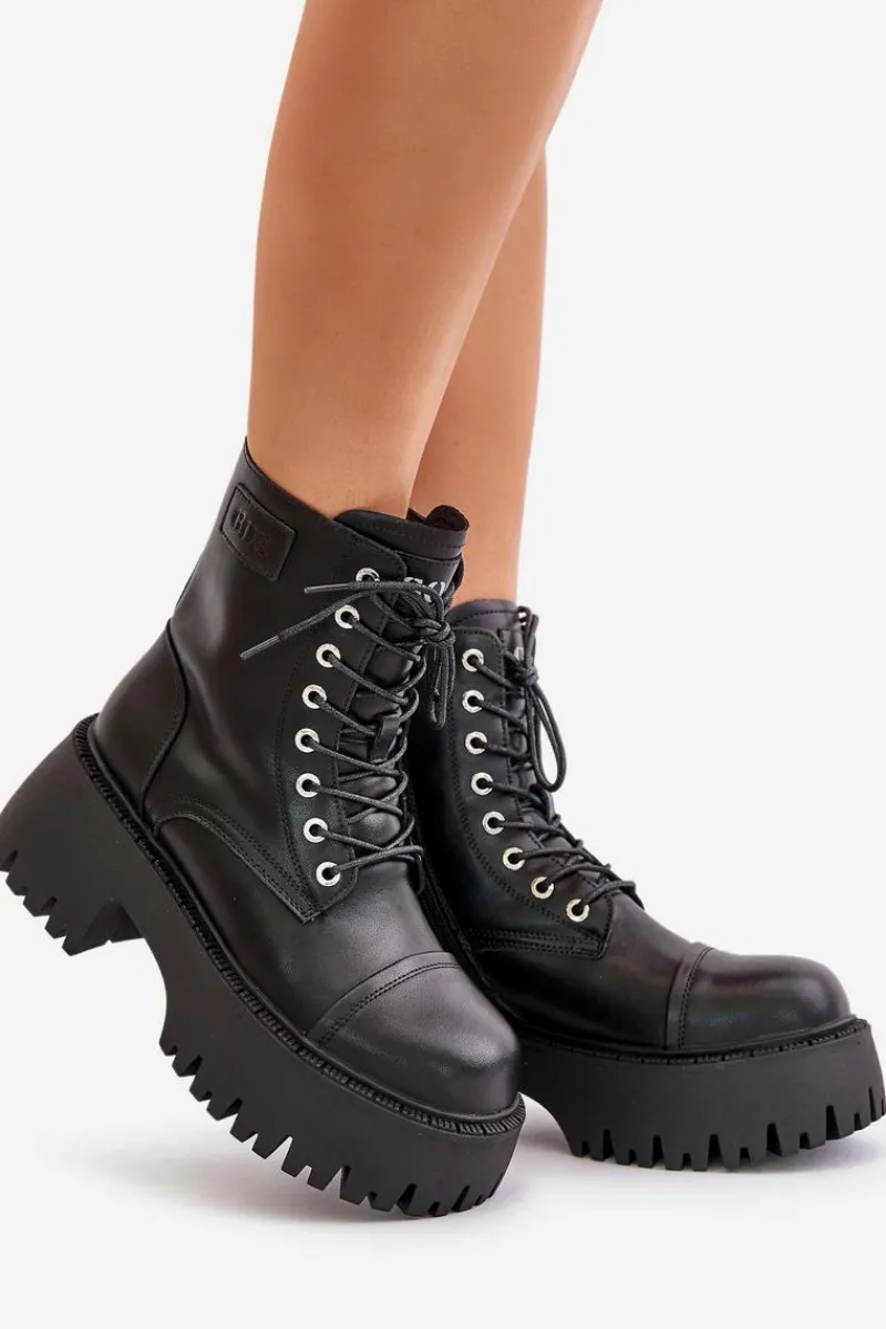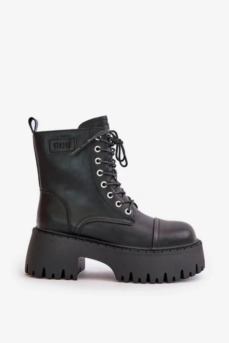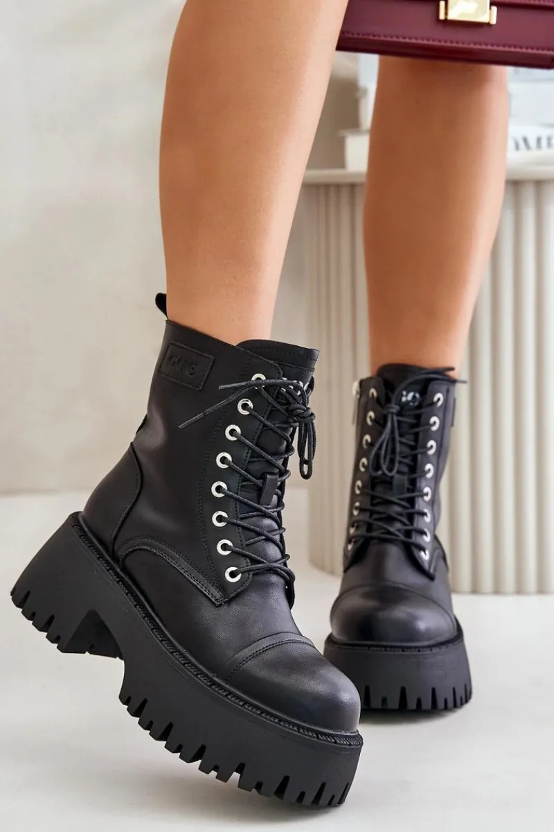 Botki od marki Goe to propozycja dla kobiet ceniących nowoczesny styl i wygodę. Wykonane ze skóry naturalnej. Osadzone na masywnej platformie i płaskim obcasie, zapewniają komfort i stabilność na każdym kroku. Model zapinany na zamek oraz sznurowany, co ułatwia dopasowanie do stopy. Zaokrąglone noski dodają im subtelnego wyglądu, idealnego do codziennych stylizacji. Przy wyborze rozmiaru prosimy kierować się tabelą rozmiarów