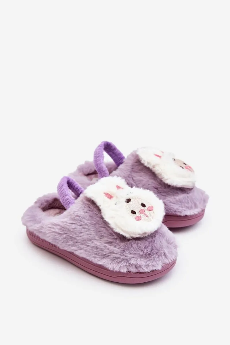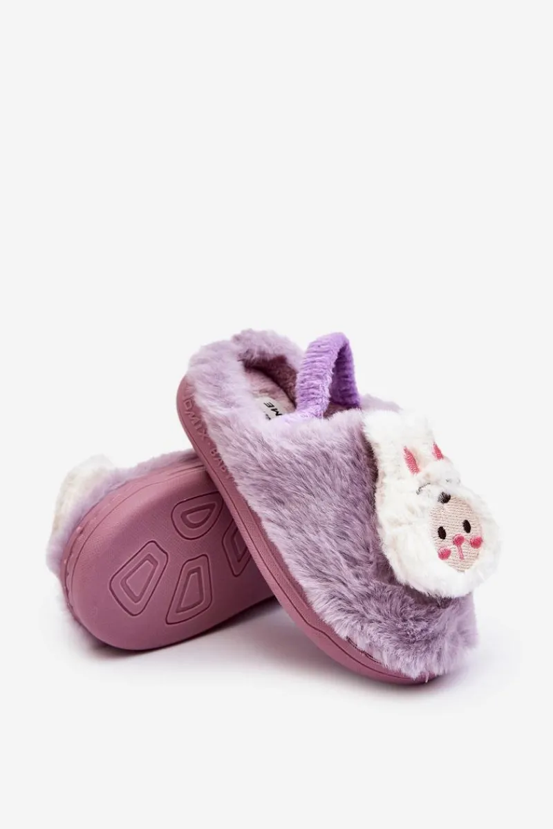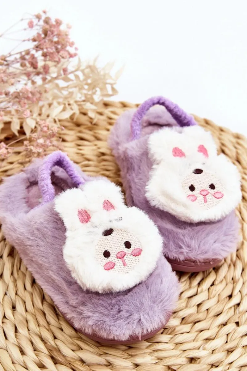 Outlet Kapcie Dziecięce Futrzane Króliczek Fioletowe Dicera Dzieci Dziewczęce