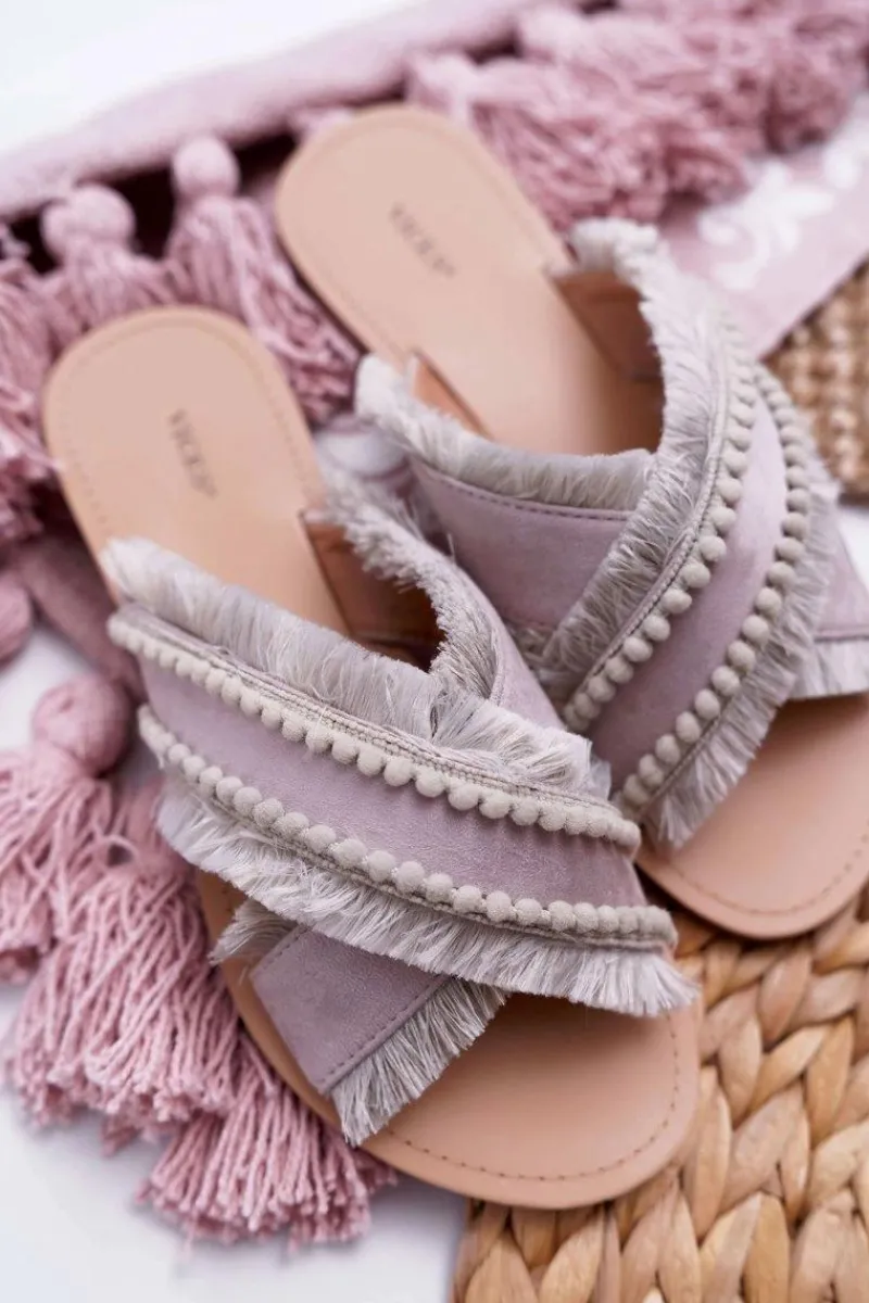 Hot Boto Damskie Klapki Z Kokardą I Cyrkoniami Różowe Jolene