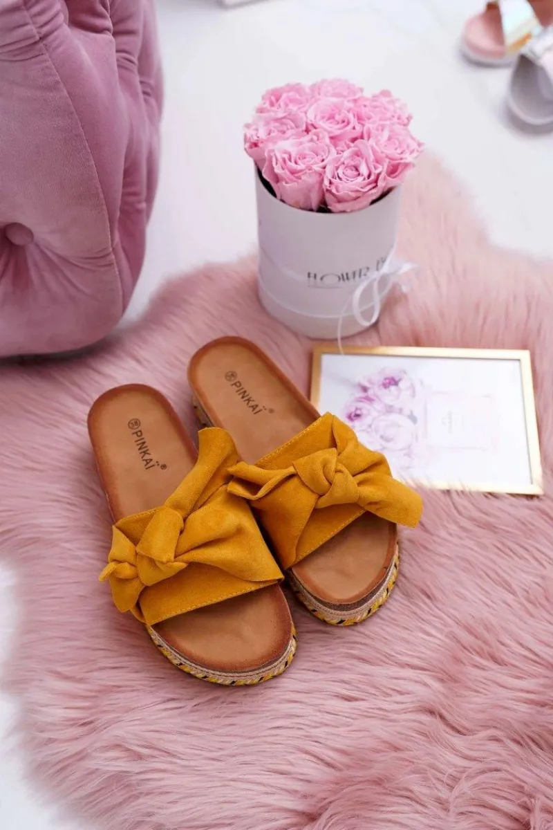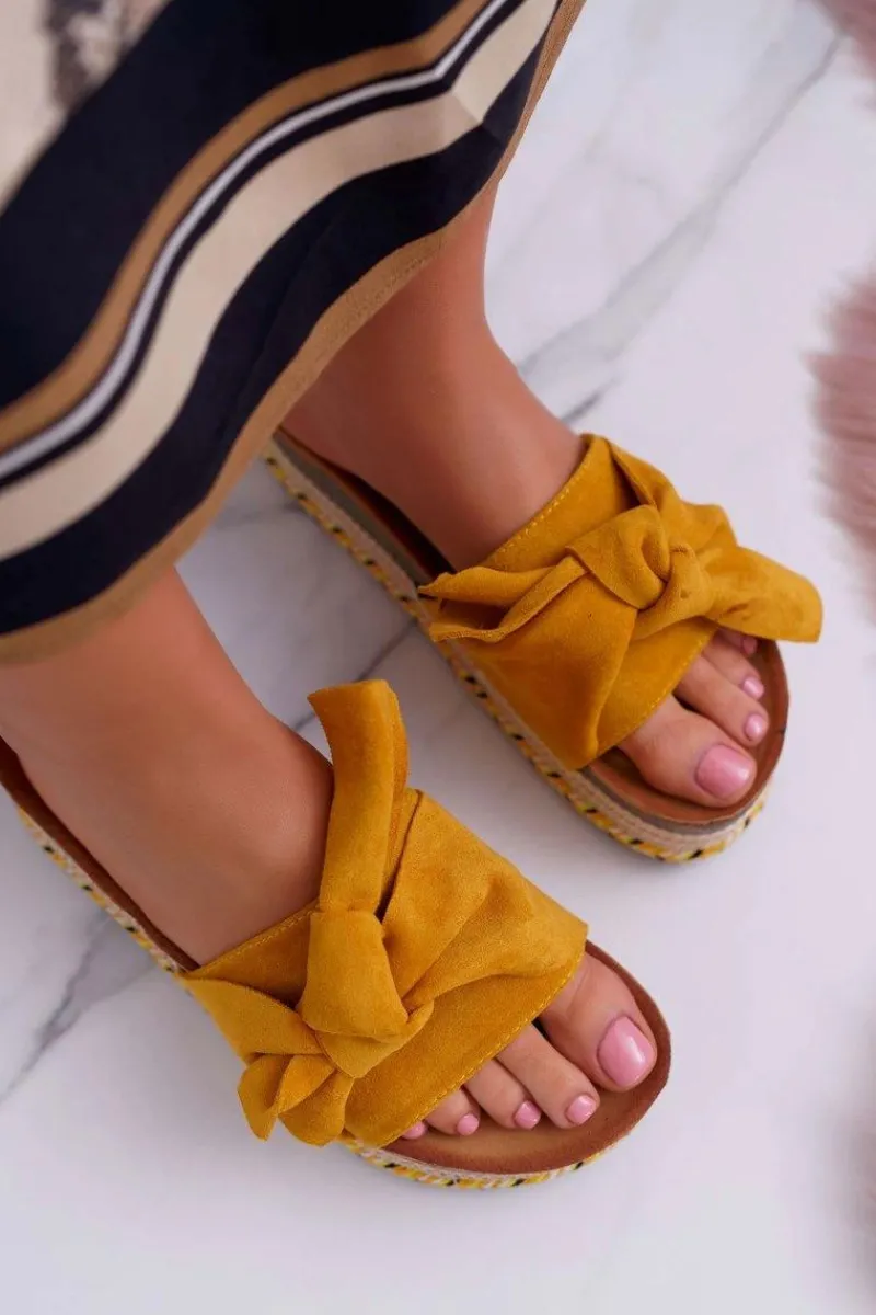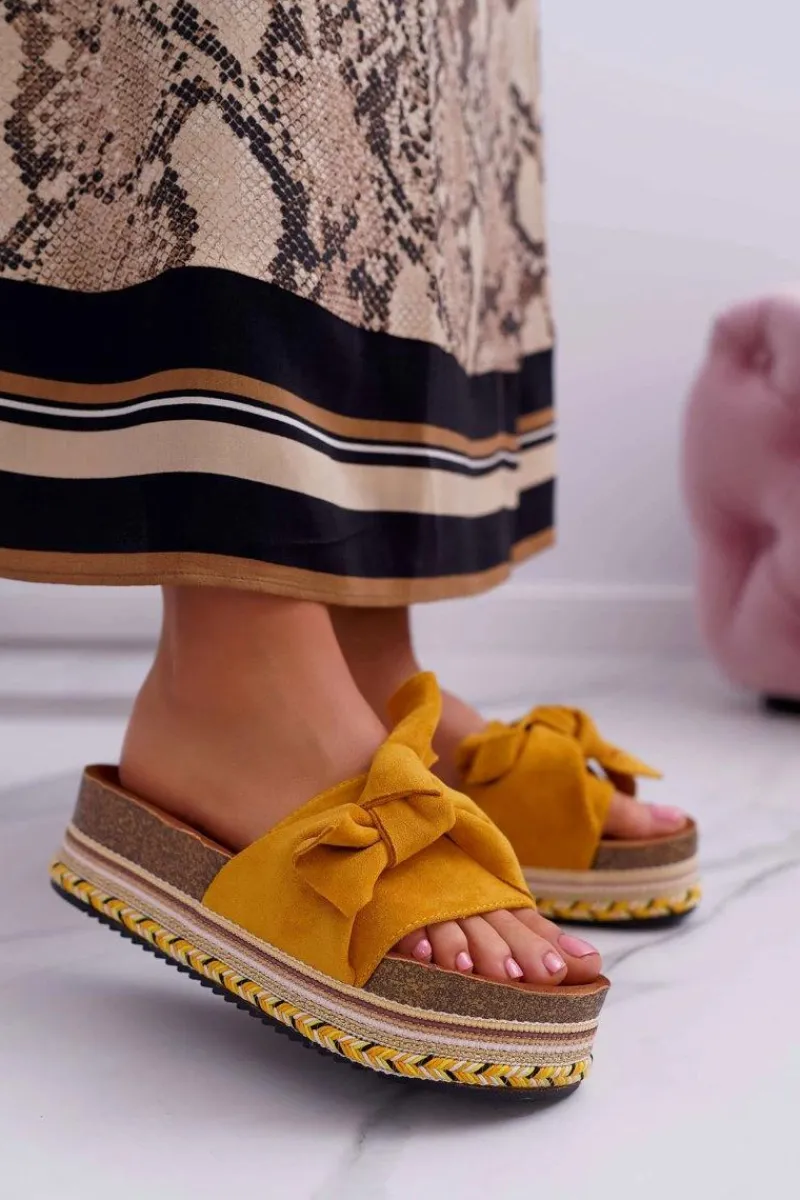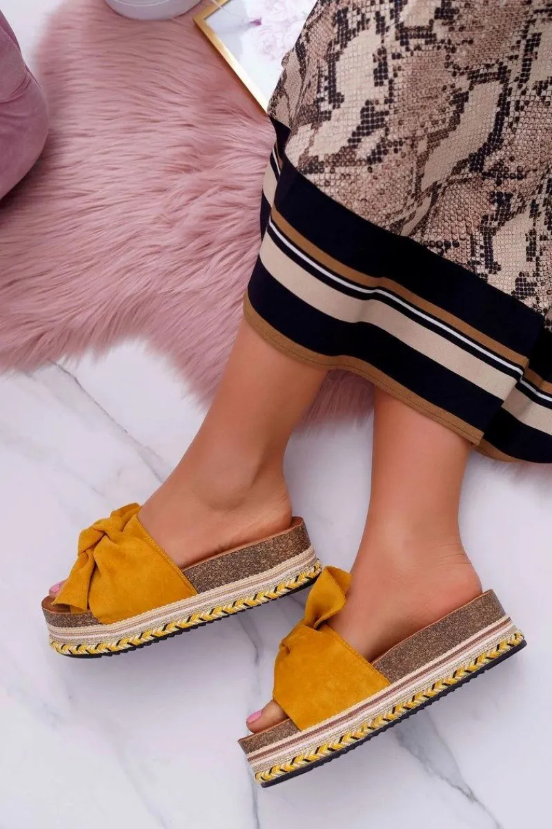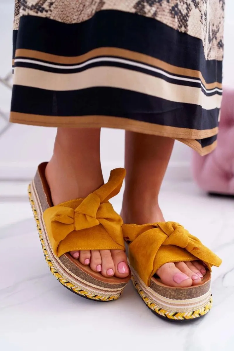 Outlet Klapki Damskie Na Platformie Z Kokardą Żółte Chantal Damskie Klapki Na Platformie|Klapki Damskie Klasyczne