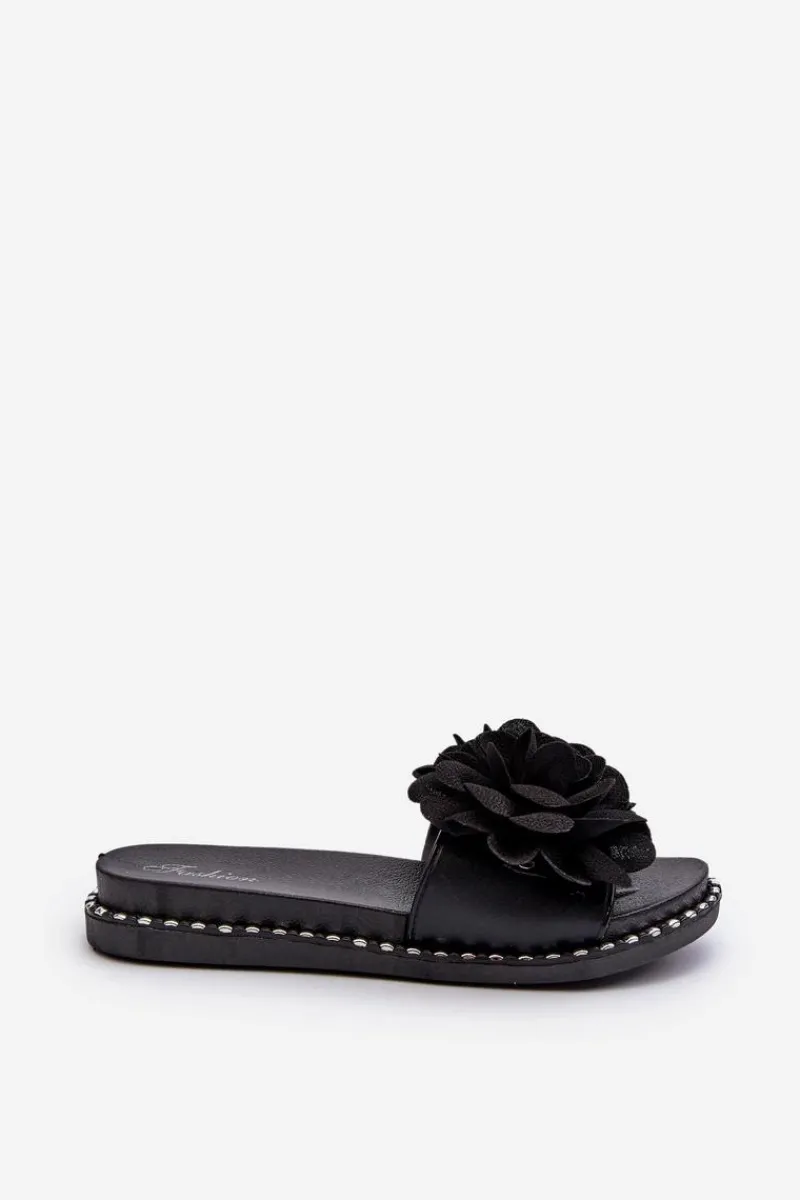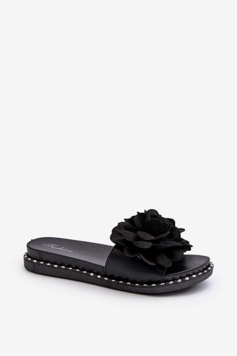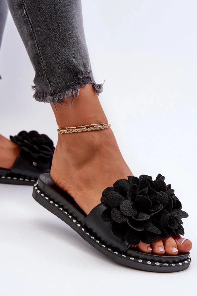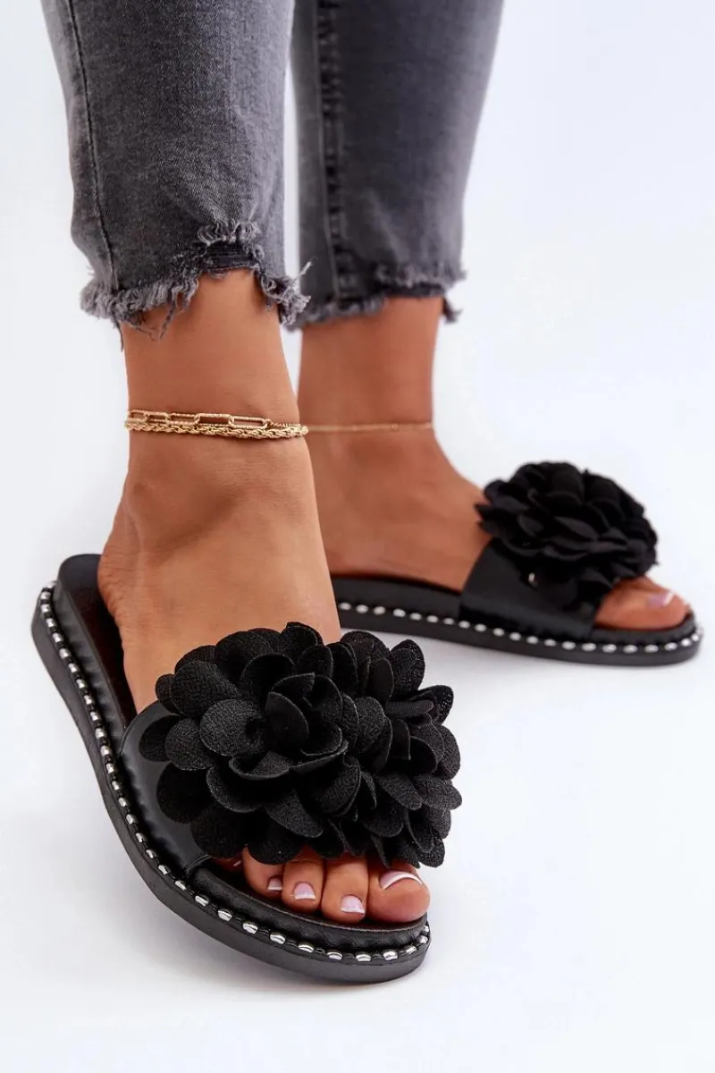 Outlet Klapki Damskie Ozdobione Kwiatami Czarne Cellanen Damskie Klapki Damskie Klasyczne