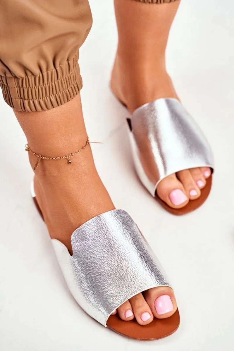 Outlet Klapki Damskie Płaskie Srebrne Mimios Damskie Klapki Damskie Klasyczne