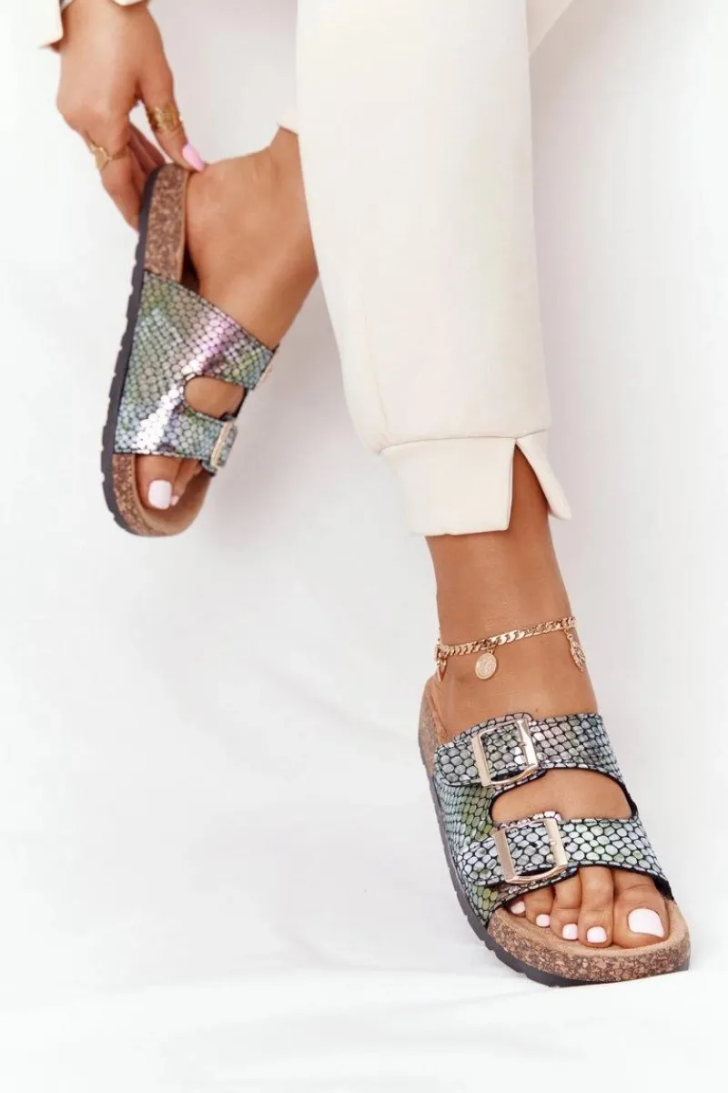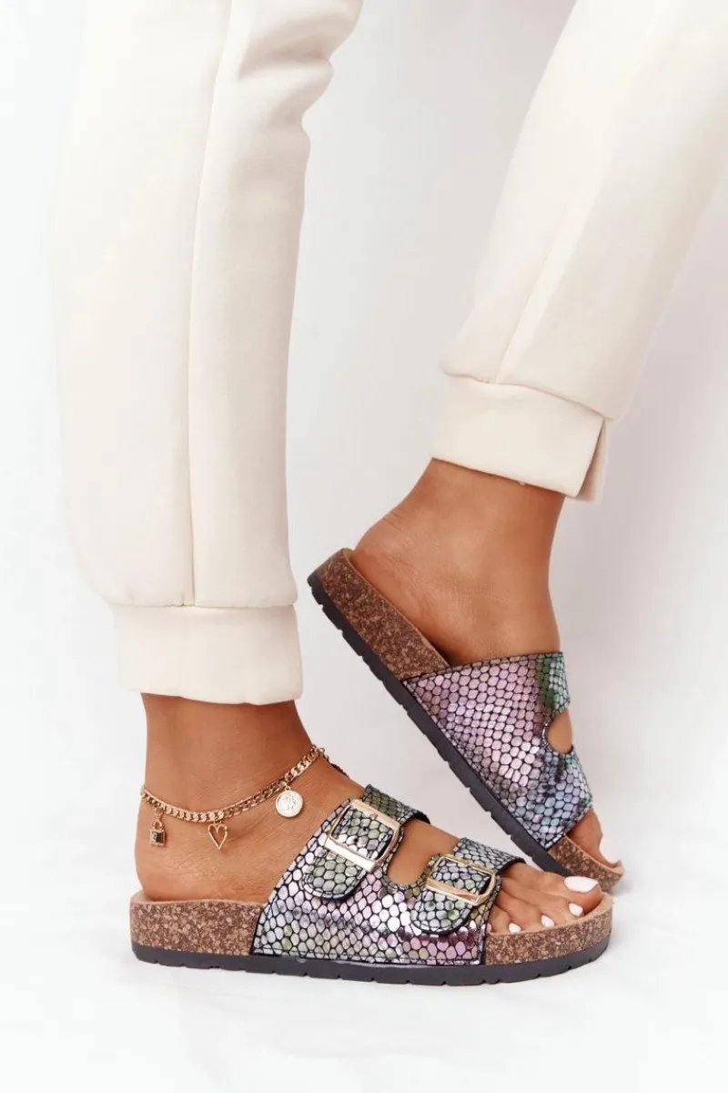 Klapki damskie ozdobione opalizującym, wężowym wzorem. Buty posiadają profilowaną wkładkę, która zagwarantuje komfort. Modny fason urozmaici Twoje stylizacje! Przy wyborze rozmiaru prosimy sugerować się tabelą rozmiarów.