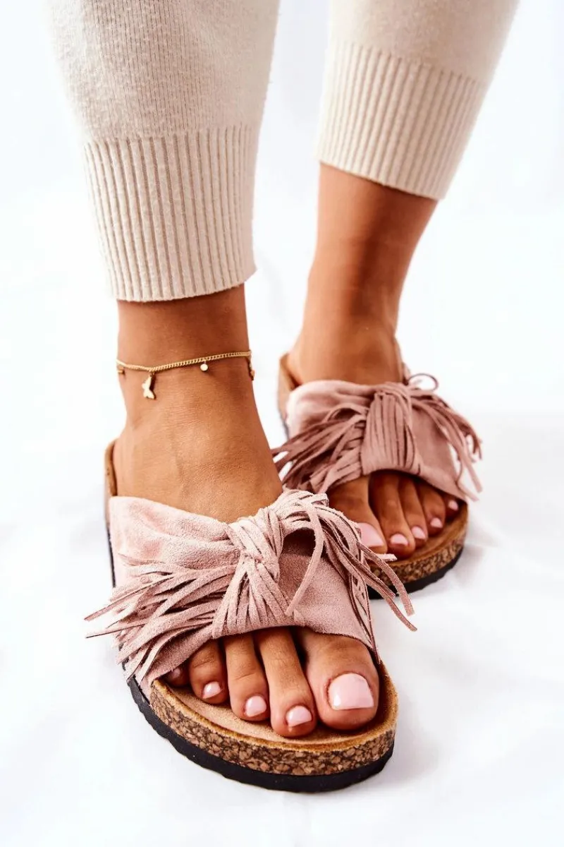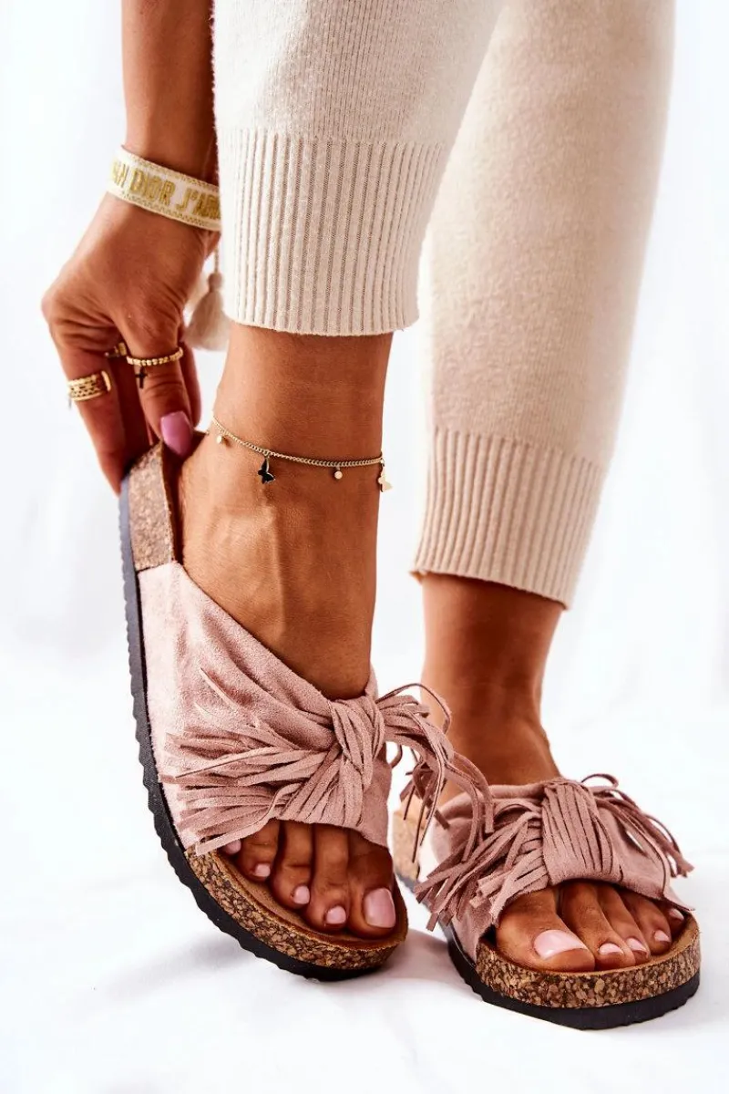 Piękne klapki na korkowej podeszwie. Buty posiadają profilowaną wkładkę, która zagwarantuje maksimum komfortu. Cholewka wykonana jest z miękkiego eko zamszu przyjemnego w dotyku. Klapki dostępne są w wielu pięknych kolorach! Przy wyborze rozmiaru prosimy sugerować się tabelą rozmiarów.