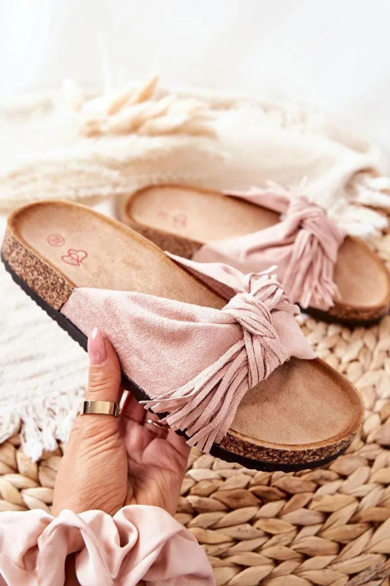 Outlet Klapki Na Korkowej Podeszwie Różowe Taryne Damskie Klapki Korkowe|Klapki Damskie Klasyczne