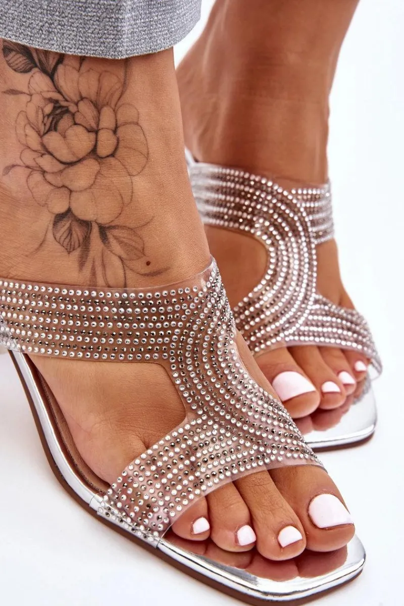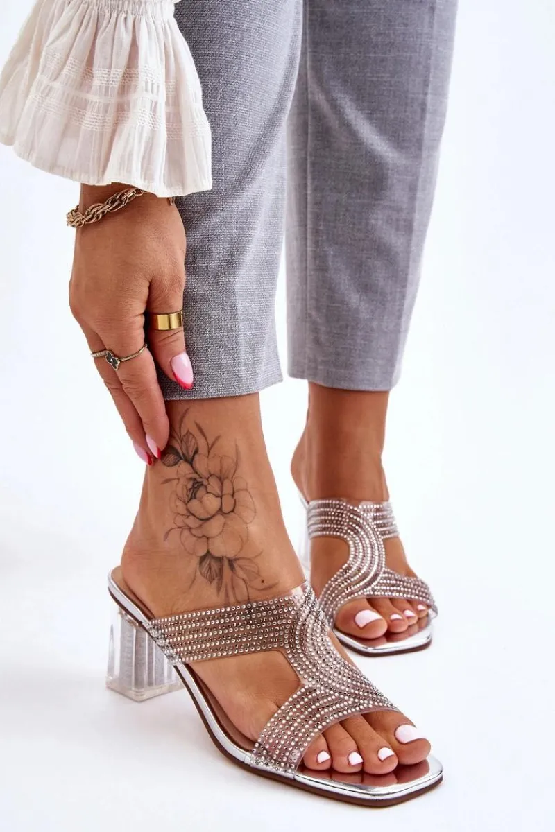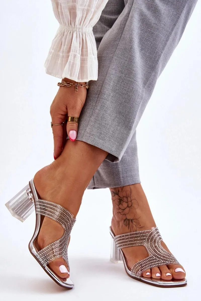 Klapki damskie zostały osadzone na obcasie w postaci słupka. Cholewka wykonana z gumowego tworzywa, która została dodatkowo ozdobiona dżetami. Model klasyczny, wsuwany, z odkrytą piętą i palcami. Buty te posiadają miękką, wykonaną z naturalnej skóry wkładkę. Stylowe, komfortowe w użytkowaniu oraz stabilne. Nie czekaj dłużej i kup już dziś! Przy wyborze rozmiaru prosimy kierować się tabelą rozmiarów.