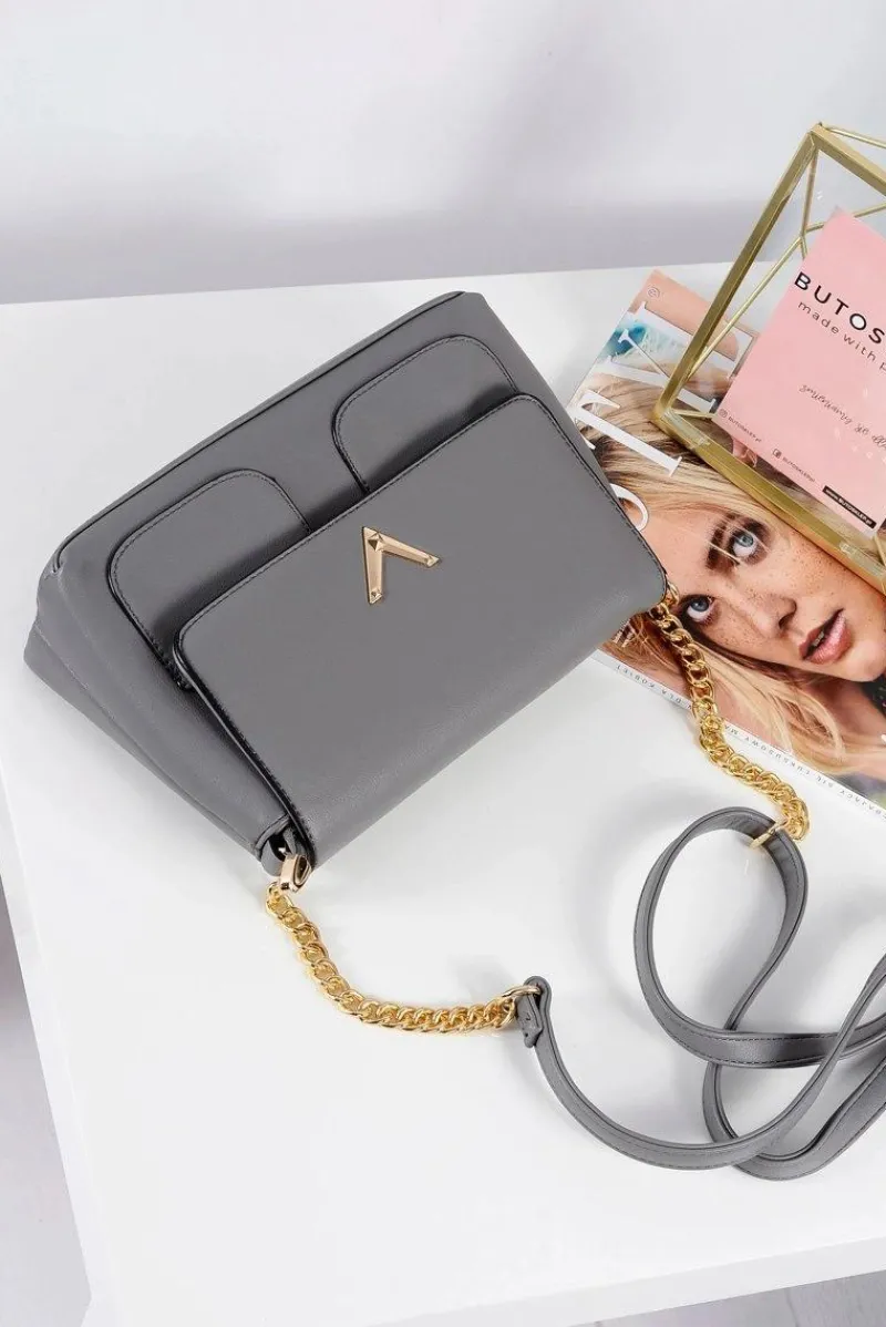 Outlet Klasyczna Szara Torebka Damska Listonoszka Złoty Łańcuch Listonoszki