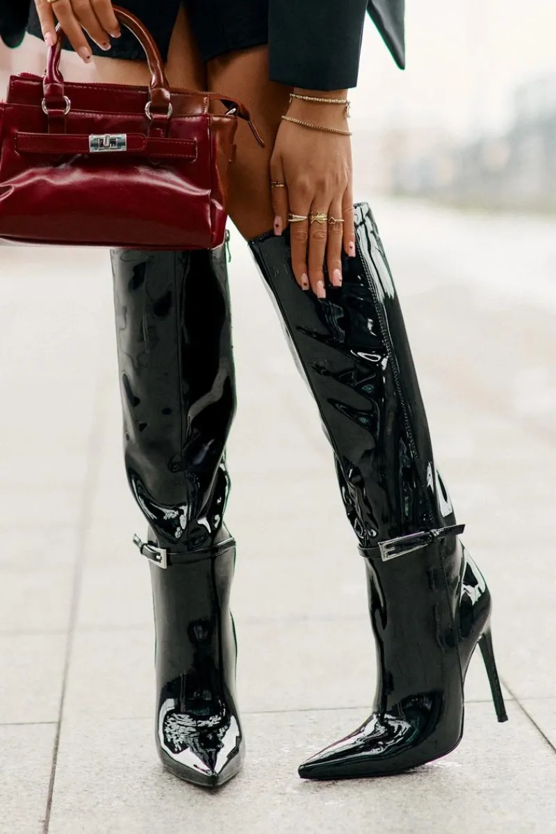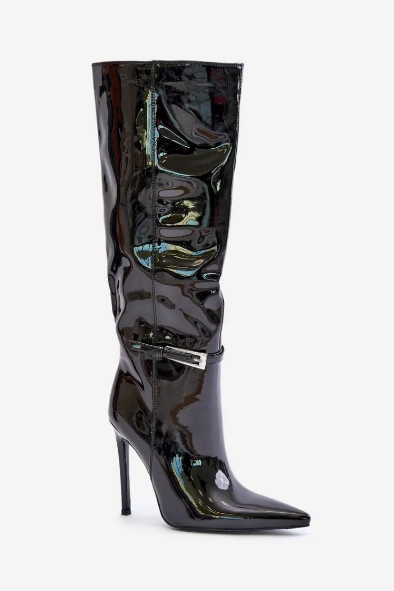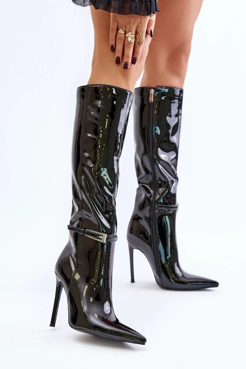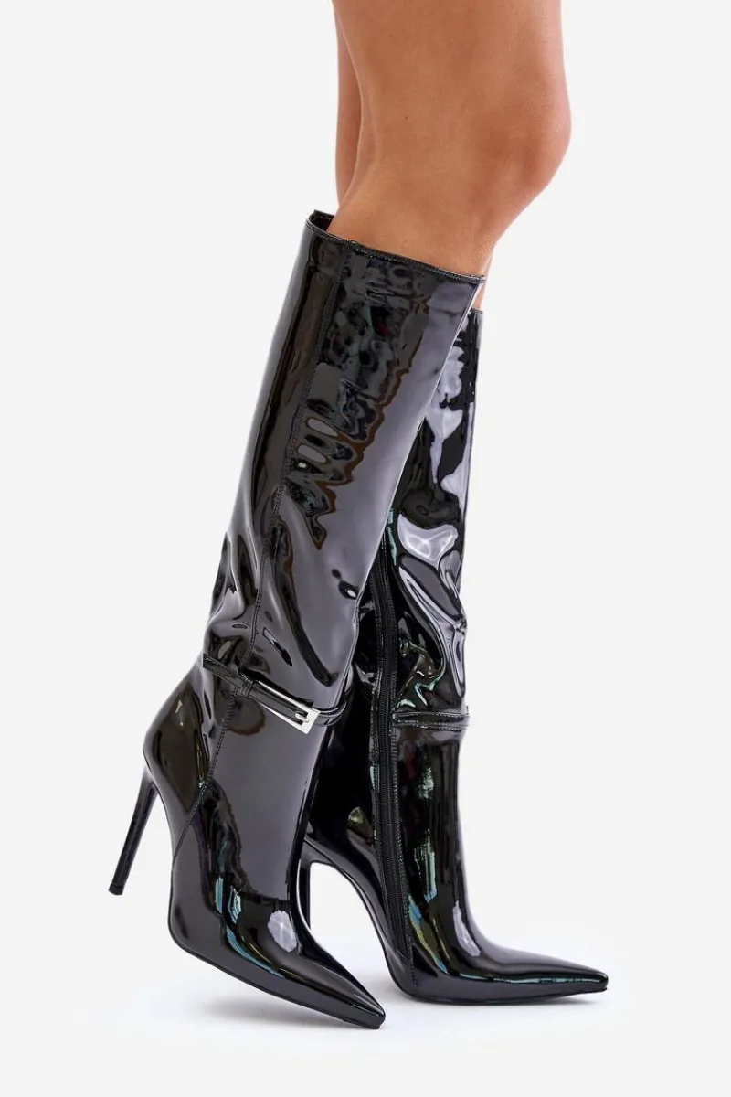 Damskie kozaki wykonano z ekologicznej skóry. Obuwie zapinane jest na suwak, co ułatwia ich zakładanie. Buty posiadają obcas w formie szpilki oraz ocieplenie z koca obuwniczego. Szpiczaste noski optycznie wysmuklają nogi, a usztywniany zapiętek zapewnia dodatkowe wsparcie. Model ten idealnie sprawdzi się na wieczorne wyjścia! Przy wyborze rozmiaru prosimy sugerować się tabelą rozmiarów.