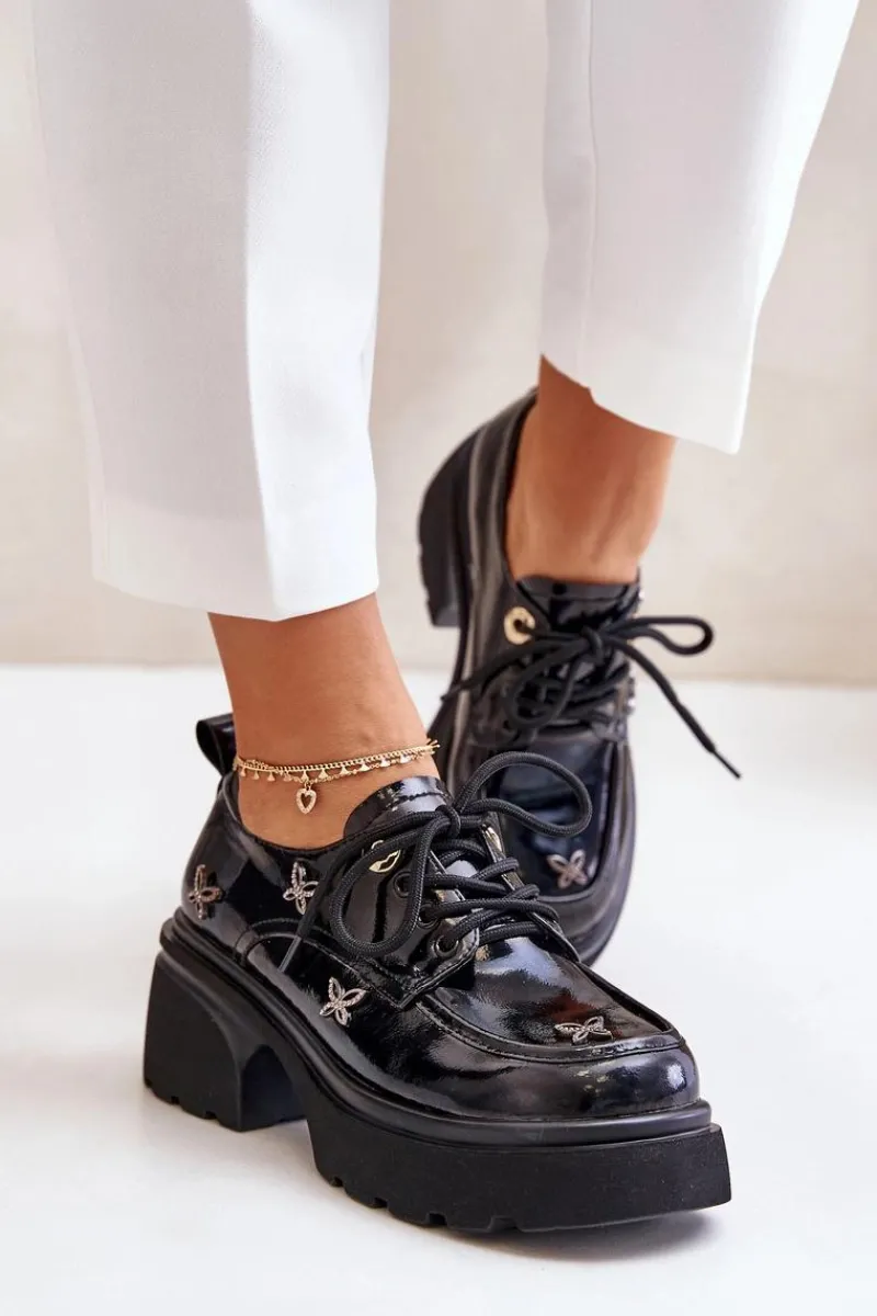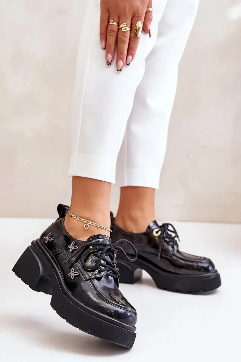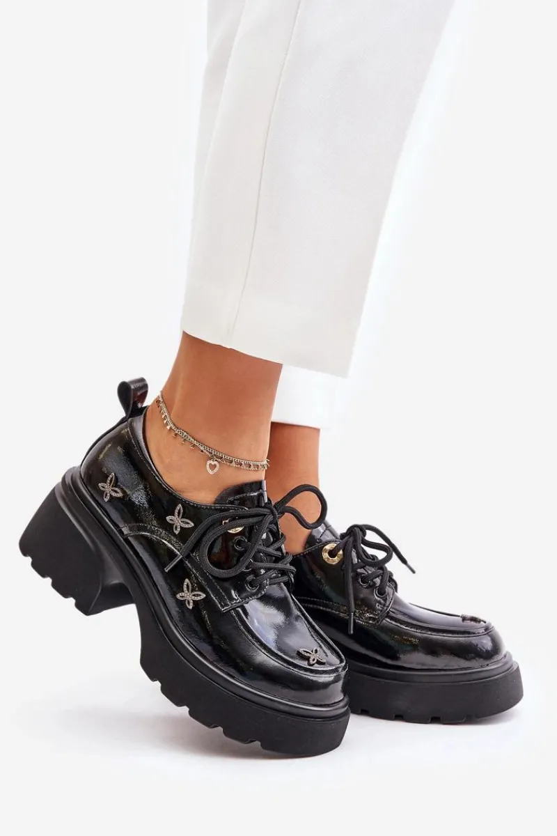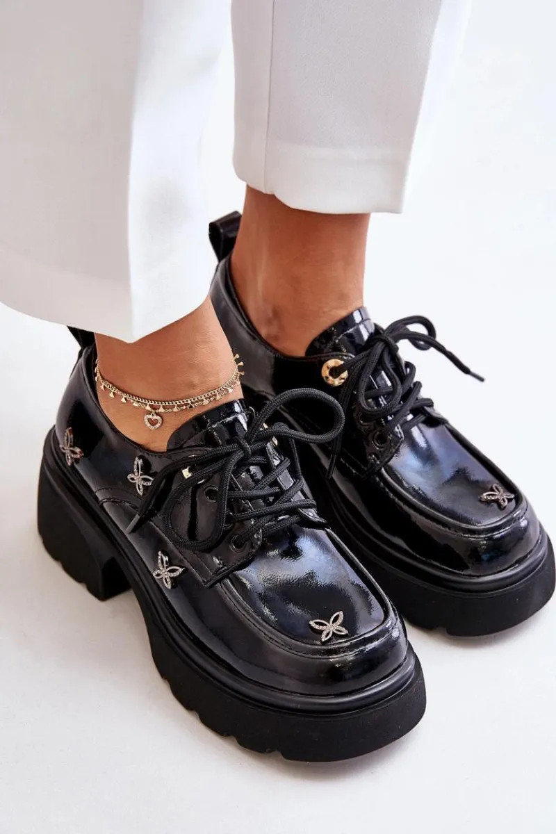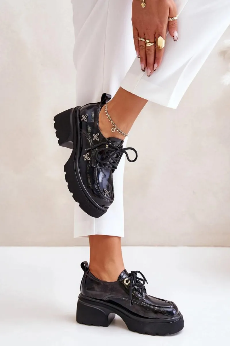 Damskie półbuty wykonane z naturalnej skóry, łączące w sobie elegancję i wyjątkowy styl. Ozdobione subtelnymi detalami, które przyciągają wzrok. Model ten posiada zaokrąglone noski oraz klasyczne sznurowanie, które gwarantuje idealne dopasowanie do stopy. Doskonały wybór zarówno na co dzień, jak i na bardziej formalne okazje, podkreślając każdą stylizację. Przy wyborze rozmiaru prosimy sugerować się tabelą rozmiarów.