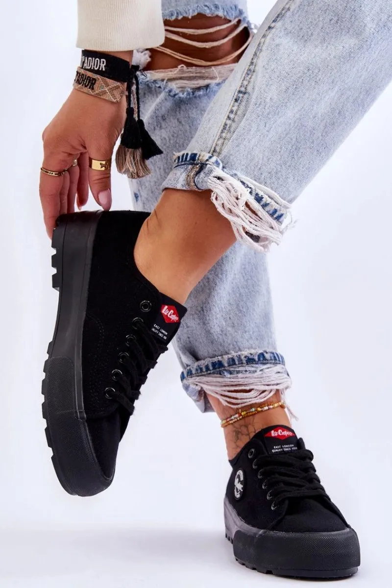 Outlet Lee Cooper Niskie Damskie Trampki Na Platformie LCW-23-44-1652L Czarne