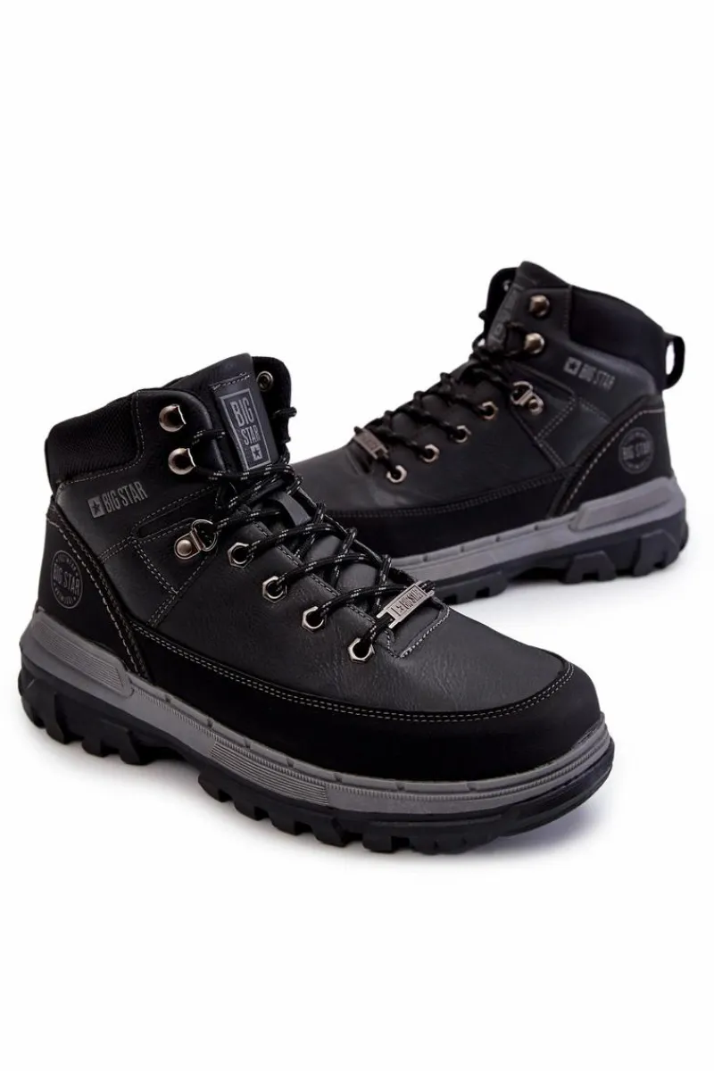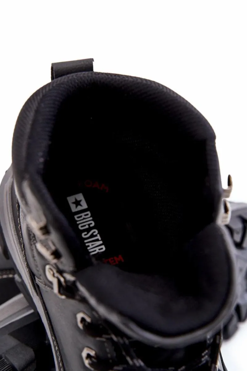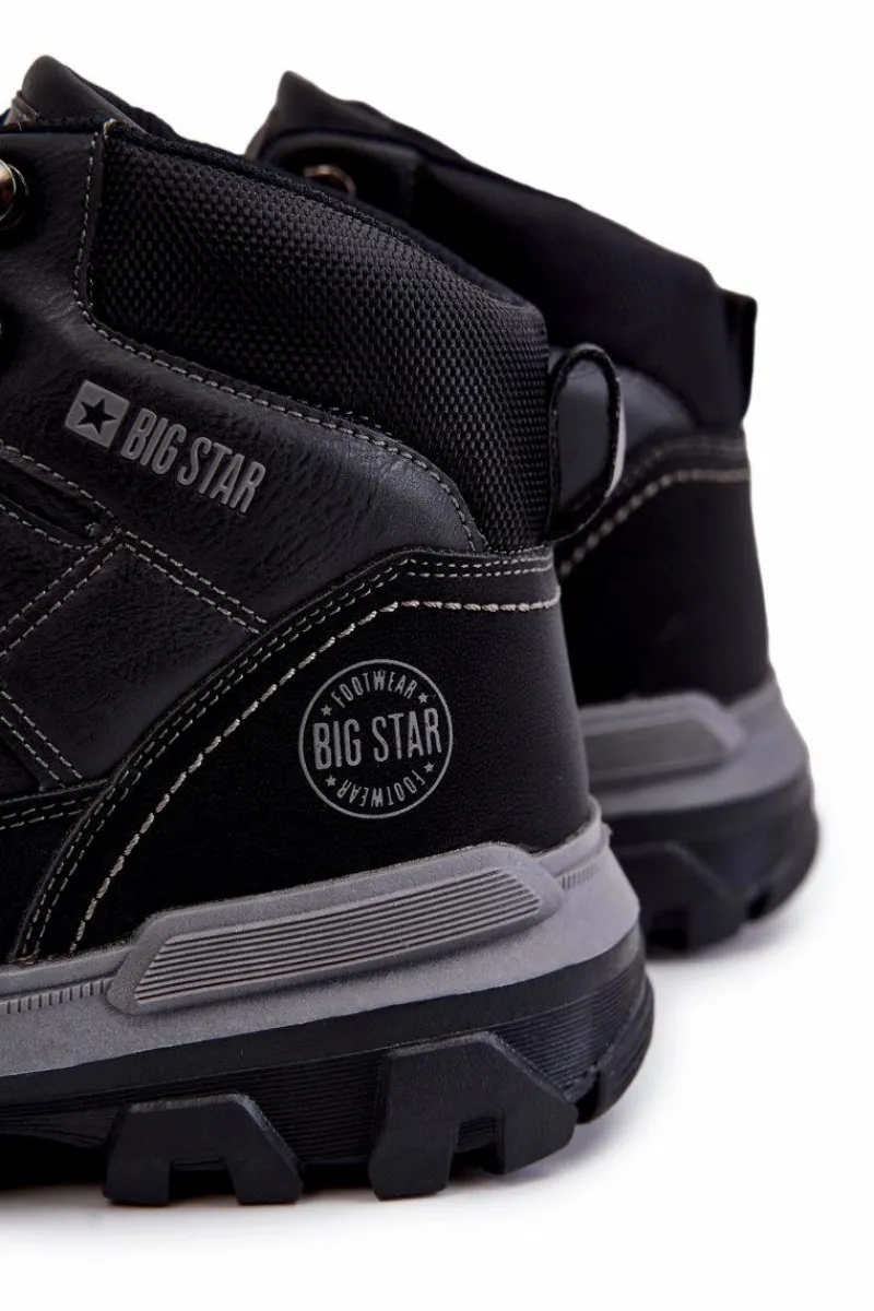 Modne botki męskie od polskiej marki Big Star z cholewką za kostkę. Wykonane z wysokiej jakości eko skóry. Model ten posiada solidne sznurowanie. Wkładka Memory Foam System zapamiętuje kształt stopy, zapewnia doskonałe dopasowanie oraz absorbuje wstrząsy. Dodatkowo jest odporna na odkształcenia oraz pozwala na odparowywanie wilgoci i regulacje temperatury. Dodatkowo usztywniany zapiętek zapewni stabilizację stopy. Przy wyborze rozmiaru prosimy sugerować się tabelą rozmiarów.