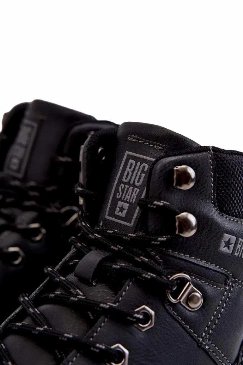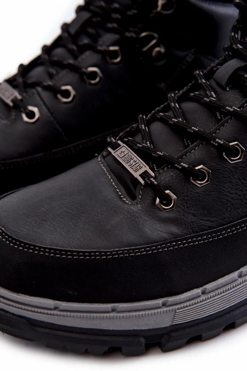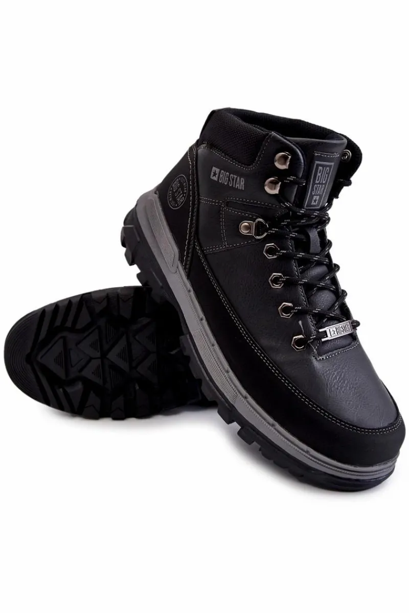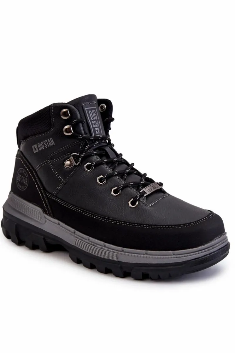 Modne botki męskie od polskiej marki Big Star z cholewką za kostkę. Wykonane z wysokiej jakości eko skóry. Model ten posiada solidne sznurowanie. Wkładka Memory Foam System zapamiętuje kształt stopy, zapewnia doskonałe dopasowanie oraz absorbuje wstrząsy. Dodatkowo jest odporna na odkształcenia oraz pozwala na odparowywanie wilgoci i regulacje temperatury. Dodatkowo usztywniany zapiętek zapewni stabilizację stopy. Przy wyborze rozmiaru prosimy sugerować się tabelą rozmiarów.