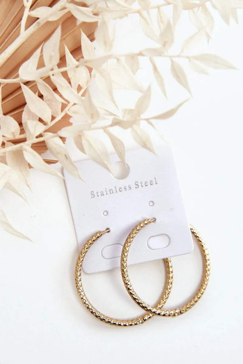 Prawie każda kobieta posiada w swojej szkatułce jakiś element biżuterii. Oczywiście nie powinno w niej zabraknąć tych kolczyków! Model w kształcie koła świetnie pasuje do wielu stylizacji. Na całości kolczyków znajdują się fasetowania. Model ten jest zapinany na sztyft zatrzaskowy, co sprawia, że kolczyki nie odepną się podczas noszenia.