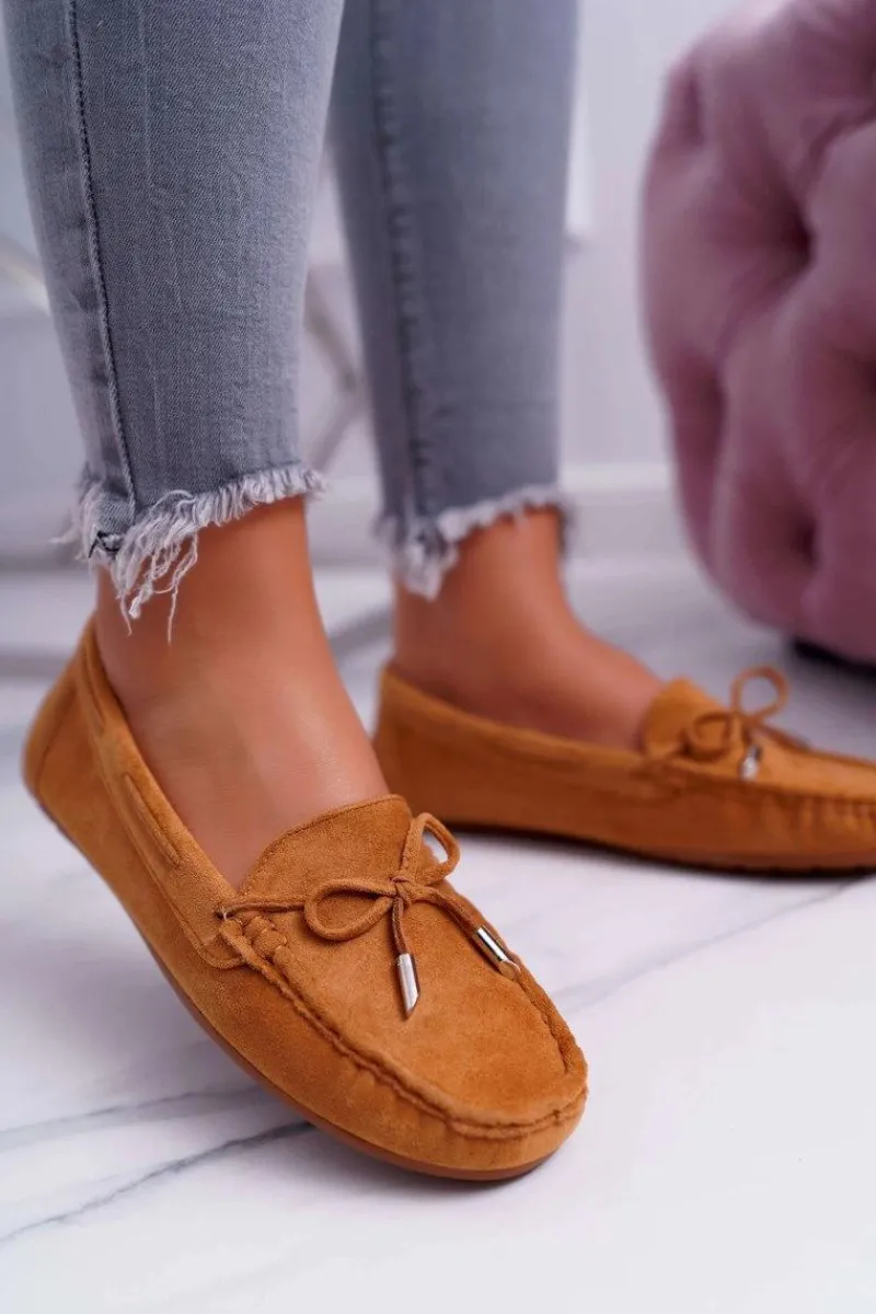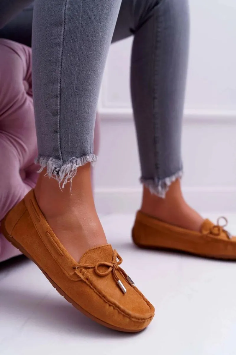 Outlet Mokasyny Damskie Zamszowe Komfortowe Camel Buggy Damskie Mokasyny Damskie Zamszowe