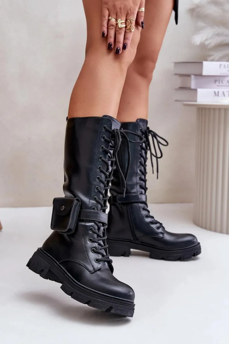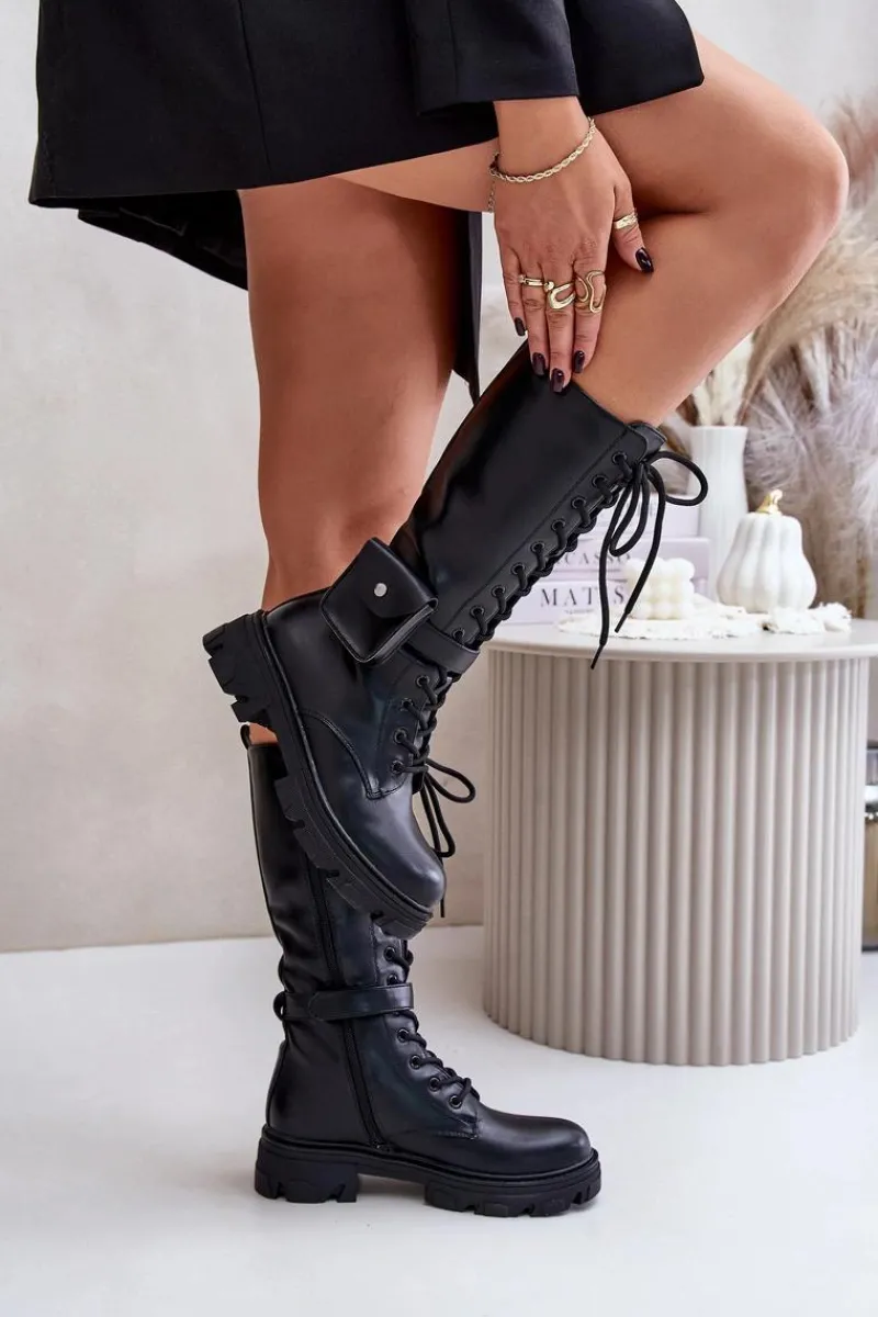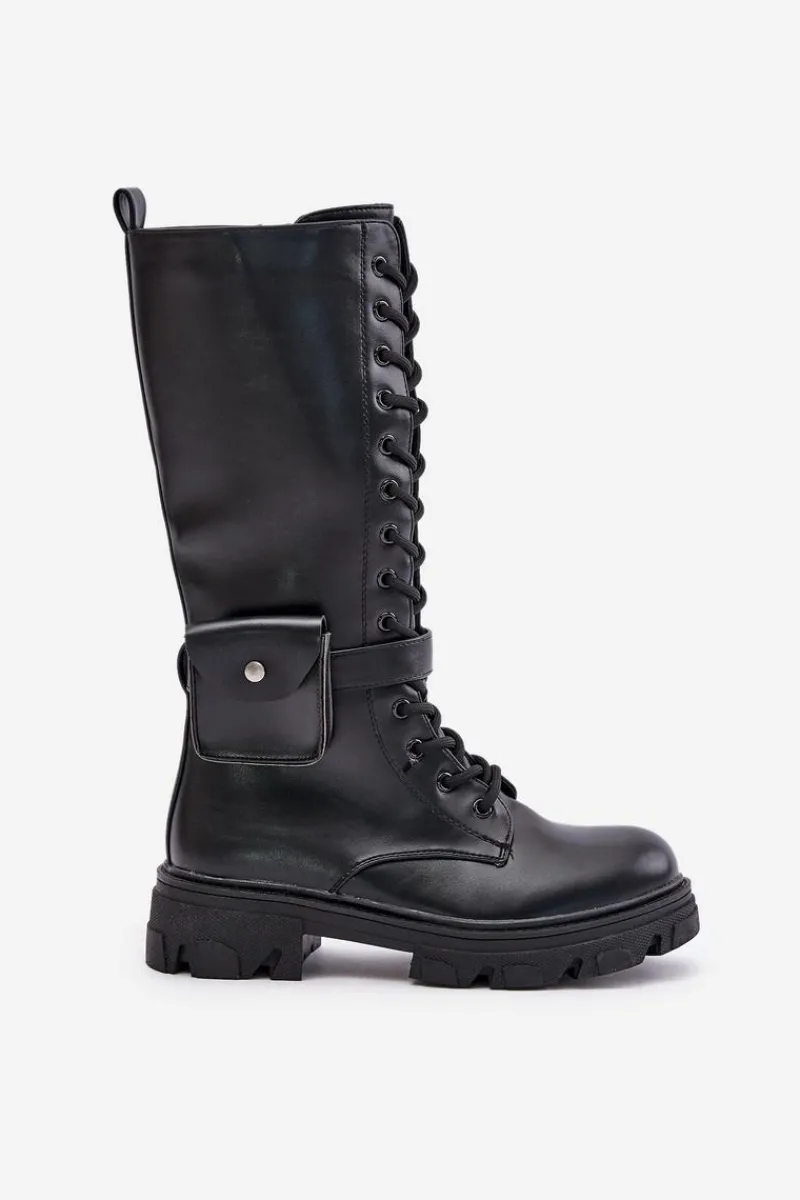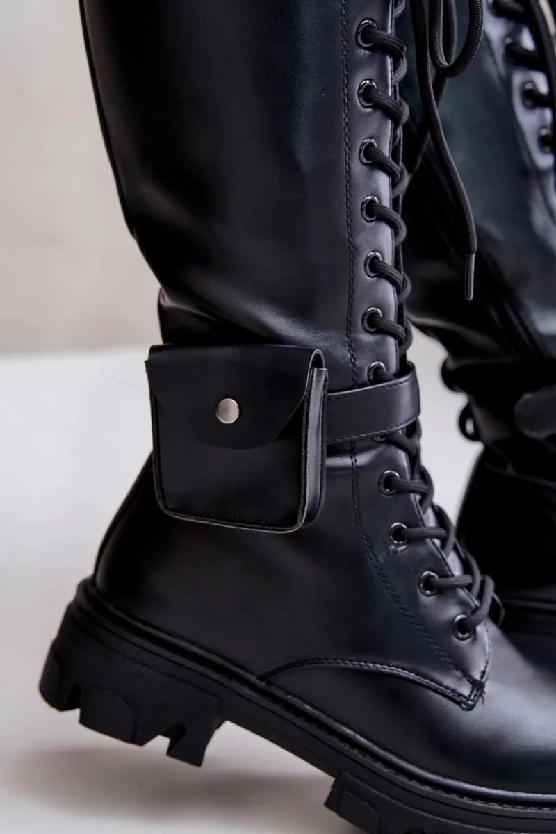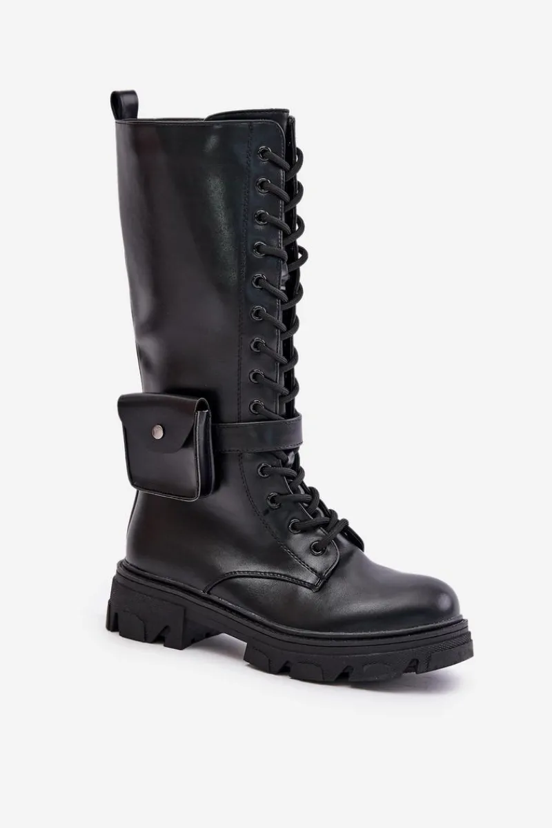 Stylowe kozaki glany wykonane z eko skóry to wyjątkowy model dla miłośników modnych akcentów. Cholewka ozdobiona jest małą saszetką na pasku, który można łatwo odpiąć. Zaokrąglone noski zapewniają komfort, a wnętrze ocieplane kocem obuwniczym gwarantuje ciepło w chłodniejsze dni. Idealne na sezon jesienno-zimowy, łączą funkcjonalność i styl. Przy wyborze rozmiaru prosimy kierować tabelą rozmiarów.