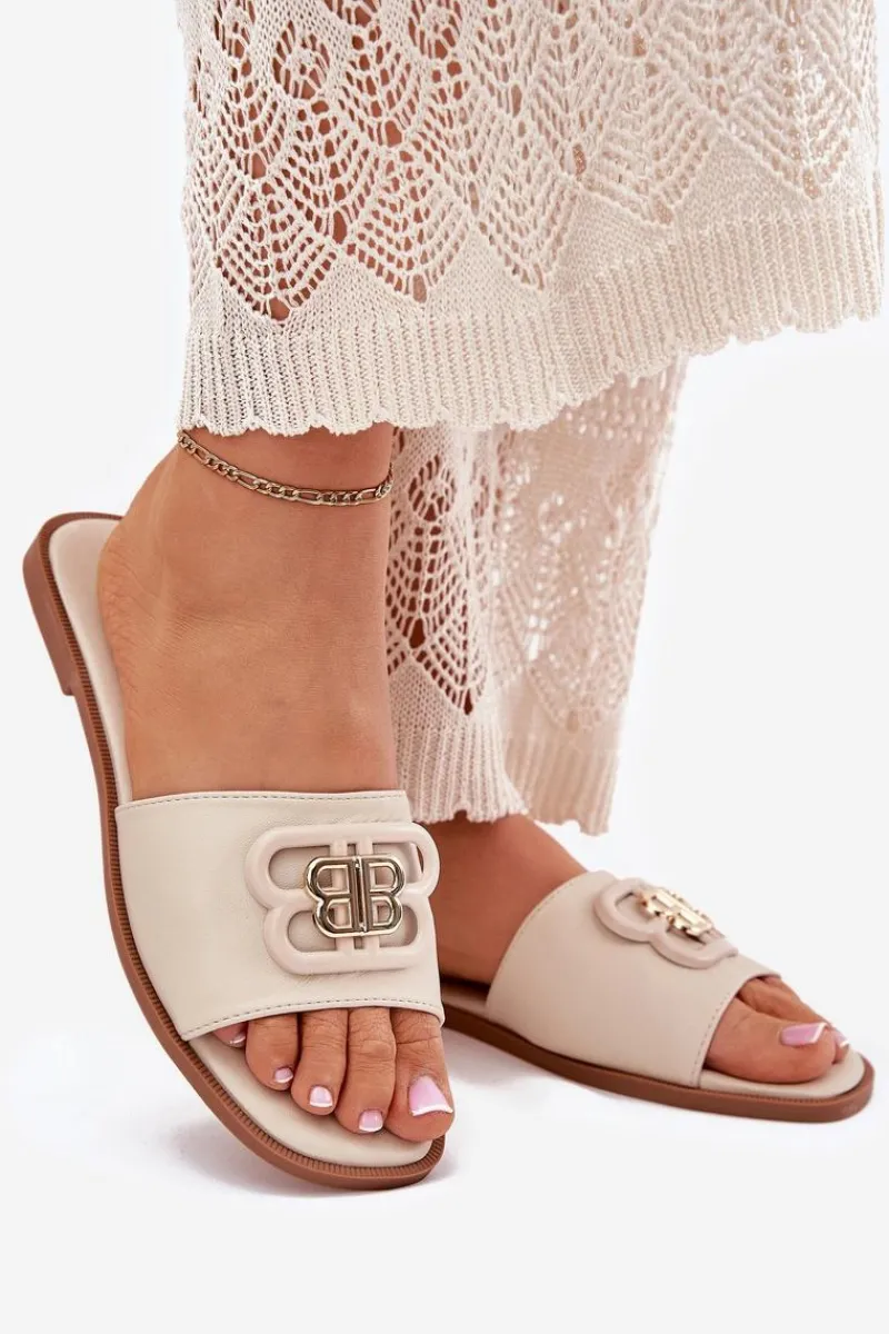 Klapki damskie na płaskim obcasie to wygodna i stylowa opcja na ciepłe dni. Na pasku znajduje się subtelny ozdobny detal, który nadaje im eleganckiego charakteru. Miękka eko skórzana wkładka zapewnia komfort przez cały dzień. Doskonałe do sukienek oraz spodni materiałowych, te klapki łączą funkcjonalność z modnym wyglądem, idealne na codzienne wyjścia. Przy wyborze rozmiaru prosimy sugerować się tabelą rozmiarów.
