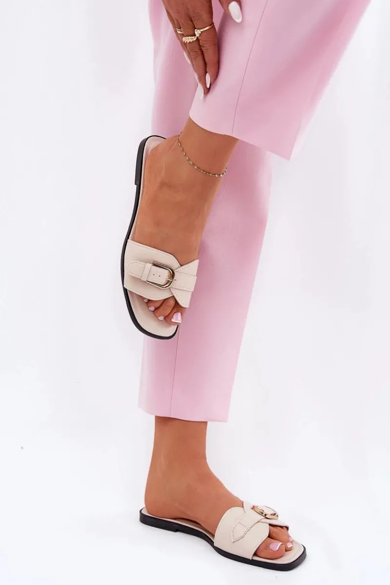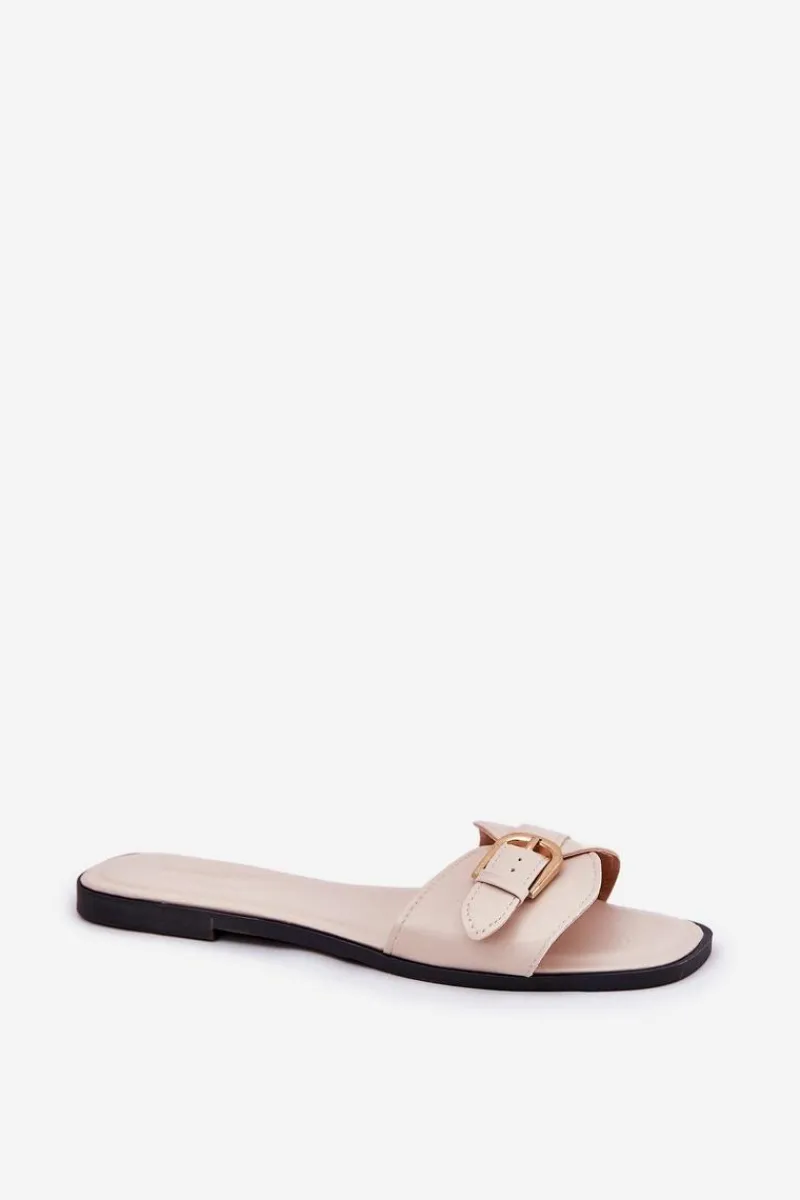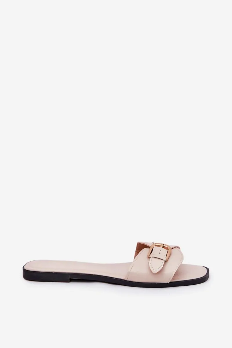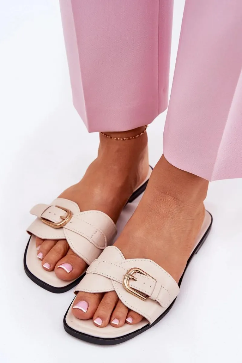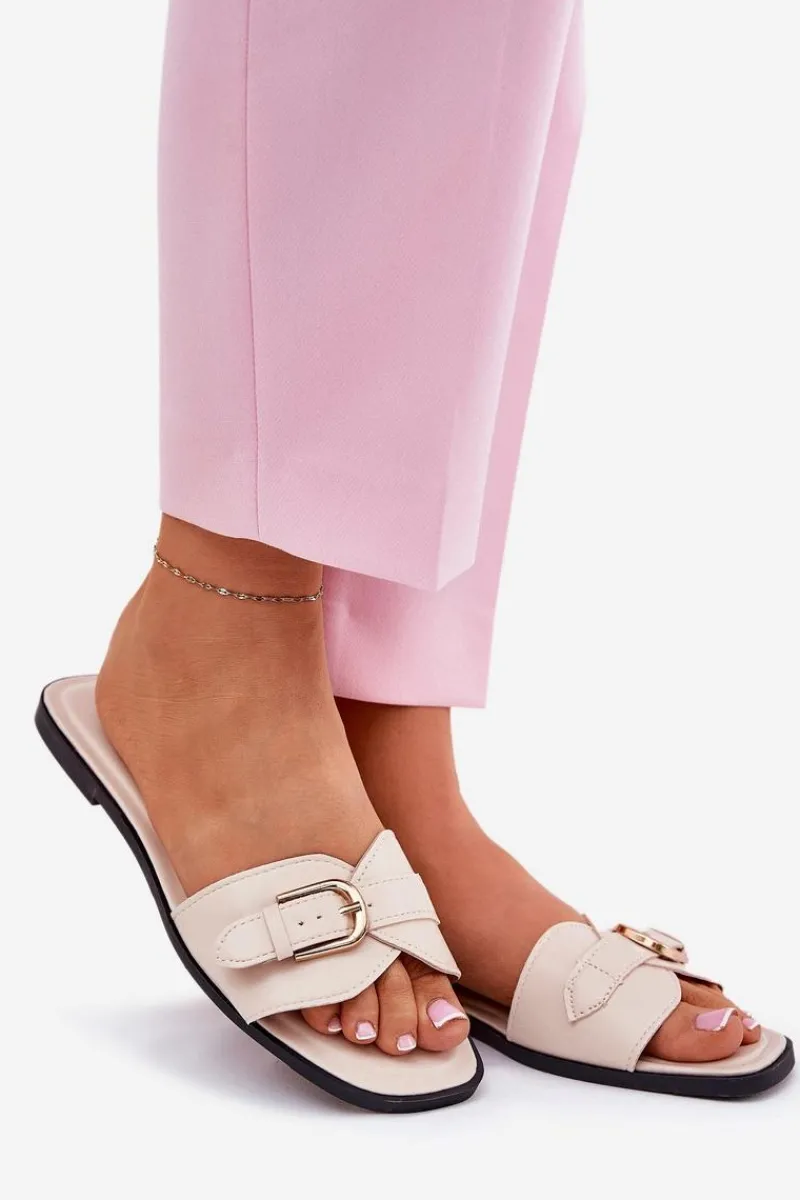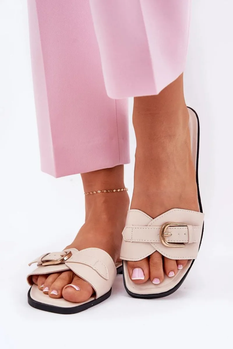 Outlet Płaskie Klapki Damskie Ze Złotą Klamrą Beżowe Esiobb Damskie Klapki Damskie Klasyczne