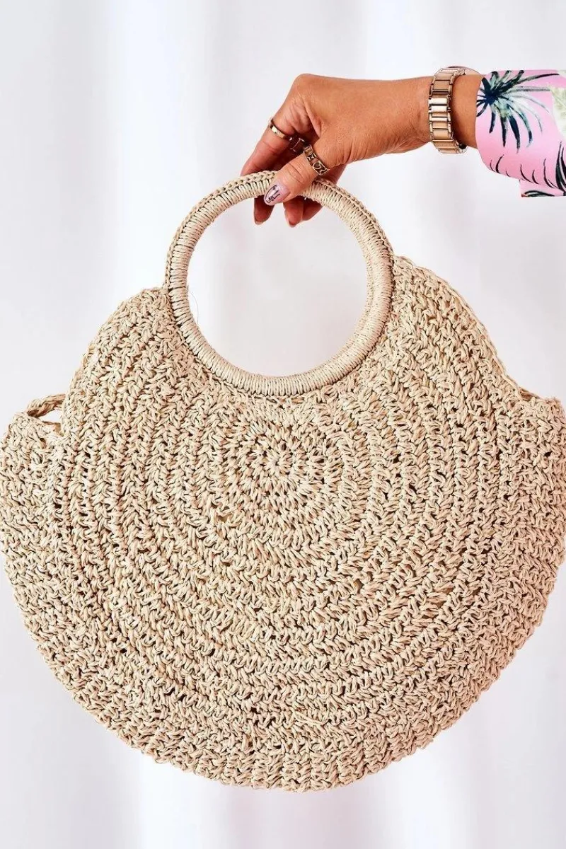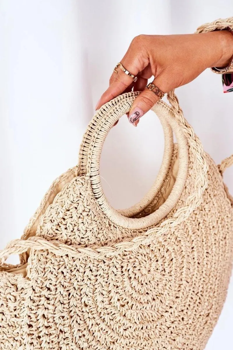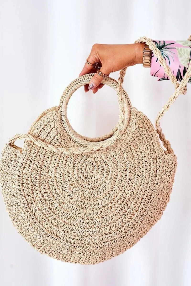 Outlet Pleciona Okrągła Torebka Boho BRUNO ROSSI Beżowa Torebki Plażowe|Torebki Klasyczne