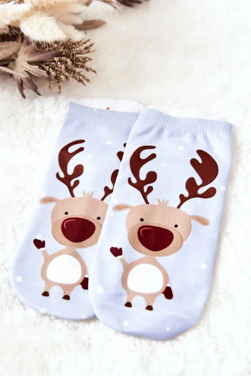Outlet Skarpetki Stopki Renifer Niebieskie Skarpetki|Skarpetki