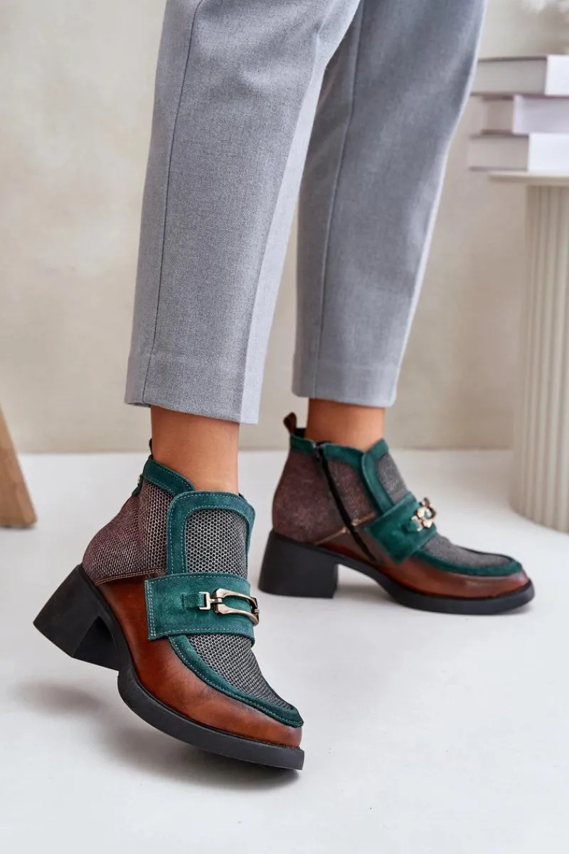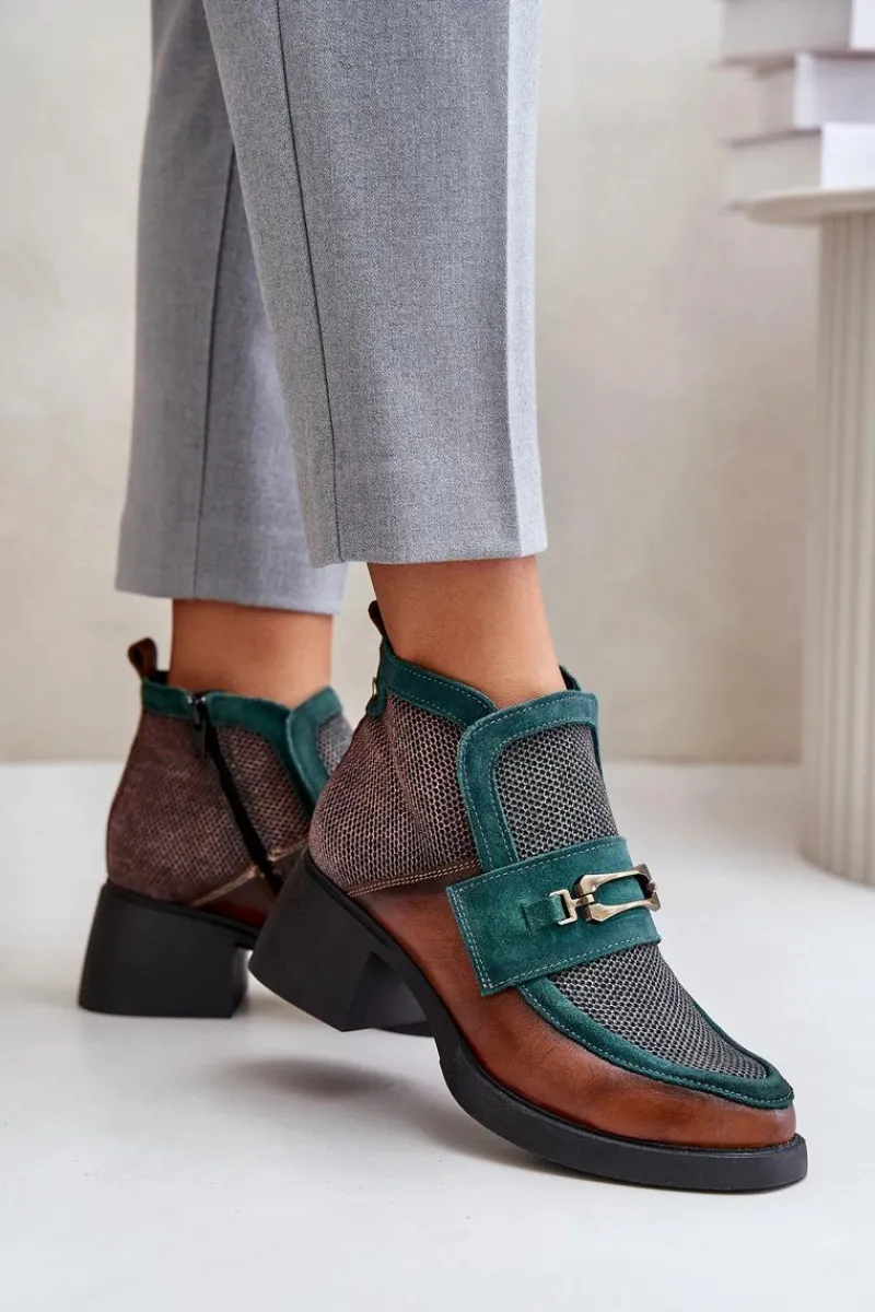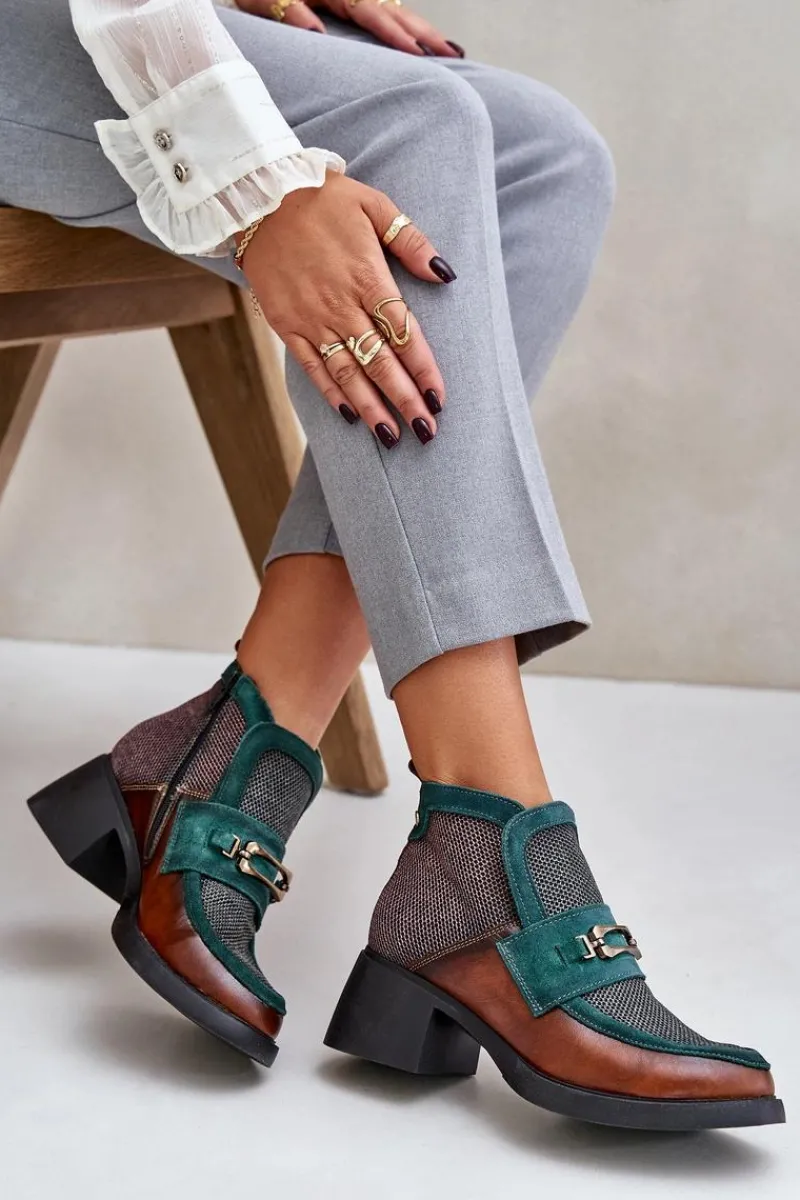 Eleganckie botki od marki Maciejka to stylowa propozycja dla kobiet ceniących modny wygląd i wygodę. Osadzone na masywnym obcasie typu klocek, zapewniają stabilność i komfort noszenia. Model zapinany na zamek, lekko ocieplany, doskonale sprawdzi się w chłodniejsze dni. Z przodu znajduje się ozdobny pasek, który dodaje butom wyrafinowanego akcentu. Idealne do eleganckich i codziennych stylizacji. Przy wyborze rozmiaru prosimy sugerować się tabelą rozmiarów.