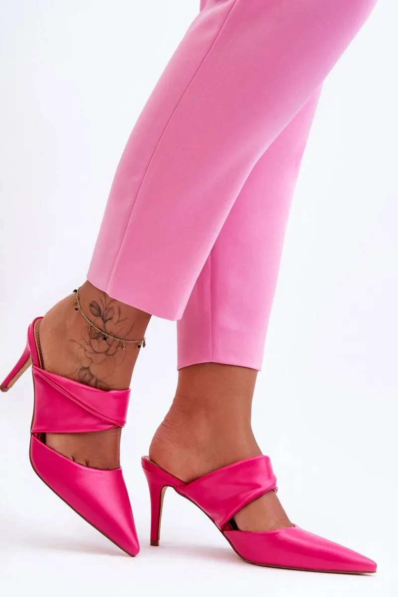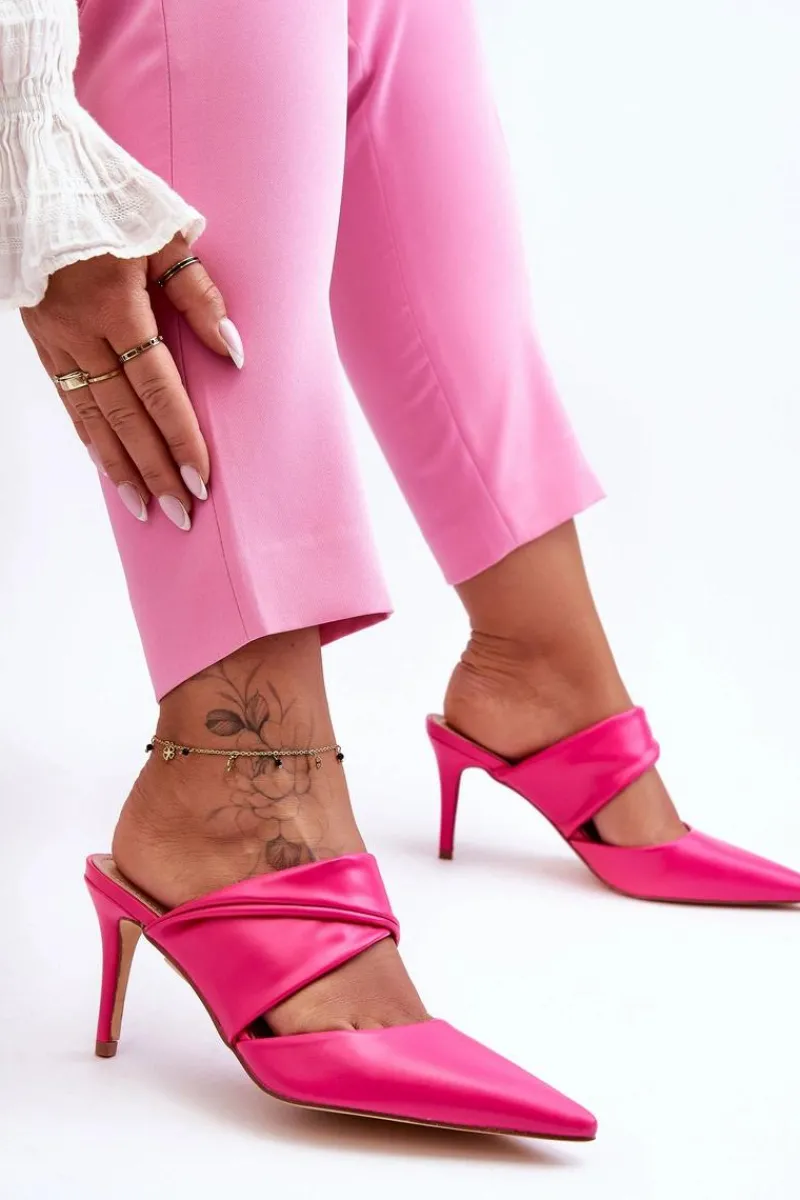 Wyjątkowe klapki na obcasie wykonane są z wysokiej jakości eko skóry z dbałością o detale. Klapki z paskiem przytrzymującym stopę przed przesuwaniem się. Miękka wkładka zapewni Ci wygodę przez cały dzień. Nowoczesny wzór skradnie serca niejednej miłośniczki wysokich obcasów. Buty osadzone na klasycznej szpilce. Elegancja i wygoda w jednym! Modny nosek w szpic. Koniecznie sprawdź także pozostałe modele eleganckich klapek! Przy wyborze rozmiaru prosimy kierować się tabelą rozmiarów.