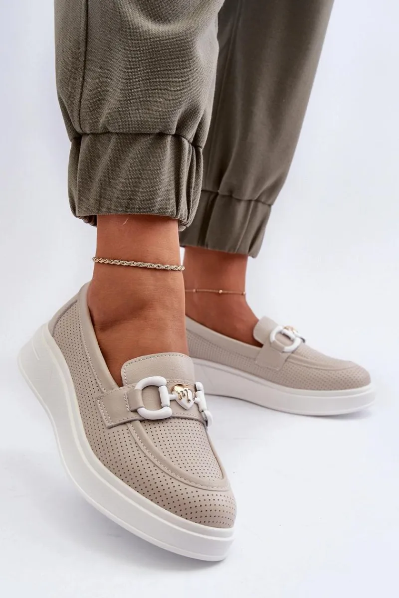 Mokasyny damskie marki S.Barski to połączenie klasyki z nowoczesnością. Wykonane z wysokiej jakości skóry naturalnej, zapewniają trwałość i komfort noszenia. Osadzone na platformie, która zapewnia stabilność podczas chodzenia. Ozdoba umieszczona z przodu nadaje im subtelnego uroku, sprawiając, że doskonale komponują się z różnymi stylizacjami. To idealny wybór dla kobiet, które cenią sobie nie tylko wygodę, ale także wyrafinowany styl. Przy wyborze rozmiaru prosimy sugerować się tabelą rozmiarów.