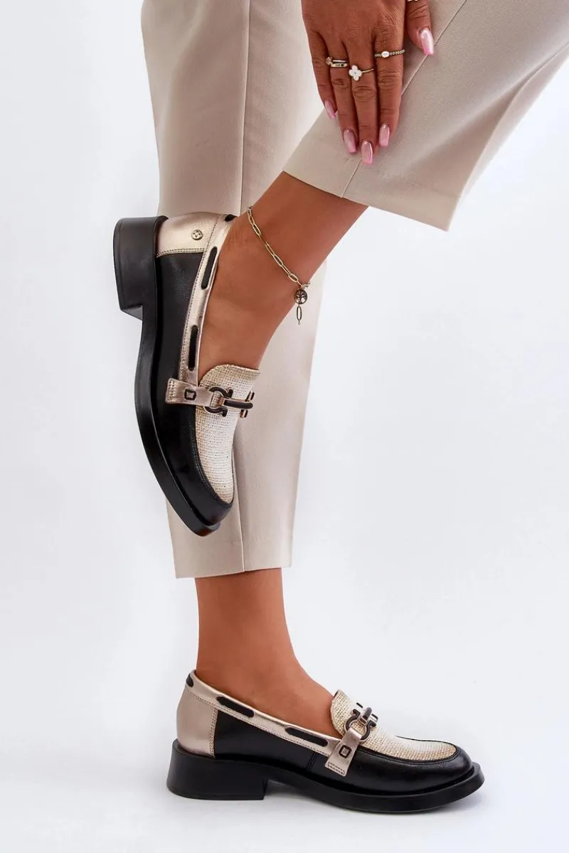 Outlet Skórzane Mokasyny Półbuty Damskie 06493-01 Czarne Damskie Loafersy Damskie|Półbuty Skórzane