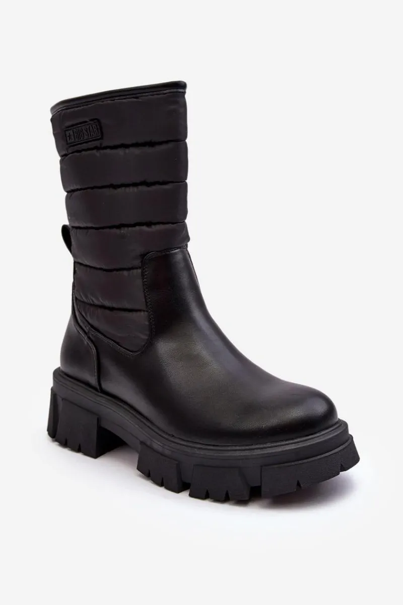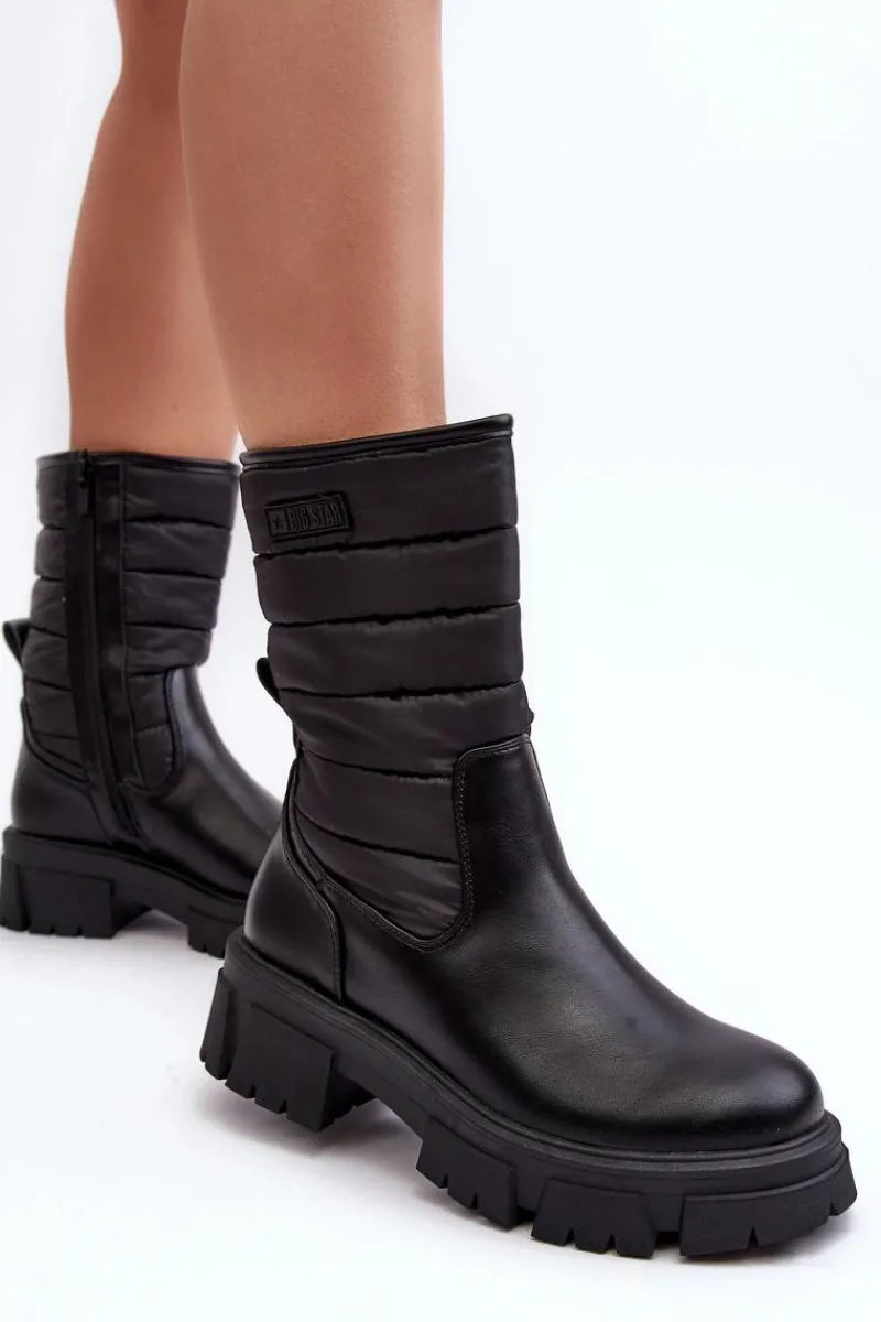 Ciepłe i modne śniegowce od marki Big Star zostały wykonane z połączenia materiału tekstylnego i eko skóry. Osadzone na platformie i płaskim obcasie z gumowego tworzywa. Wnętrze ocieplone kocem obuwniczym. Klasyczny fason, który pasuje do wielu stylizacji. Zapinane na suwak z boku. Dodatkowo zapiętek jest usztywniony. Ten wygodny i ciepły model powinien być Twój! Przy wyborze rozmiaru prosimy sugerować się tabelą rozmiarów.
