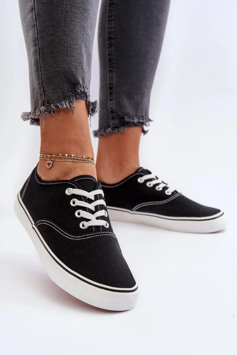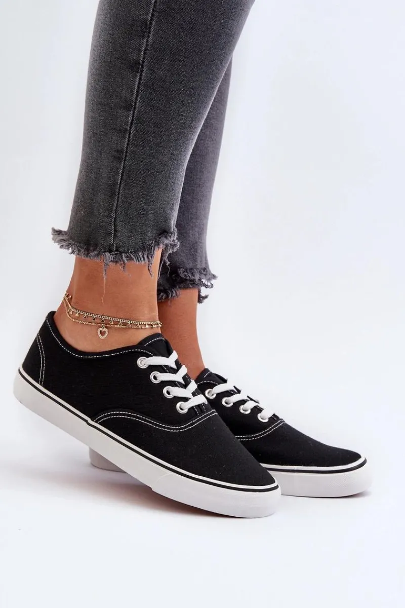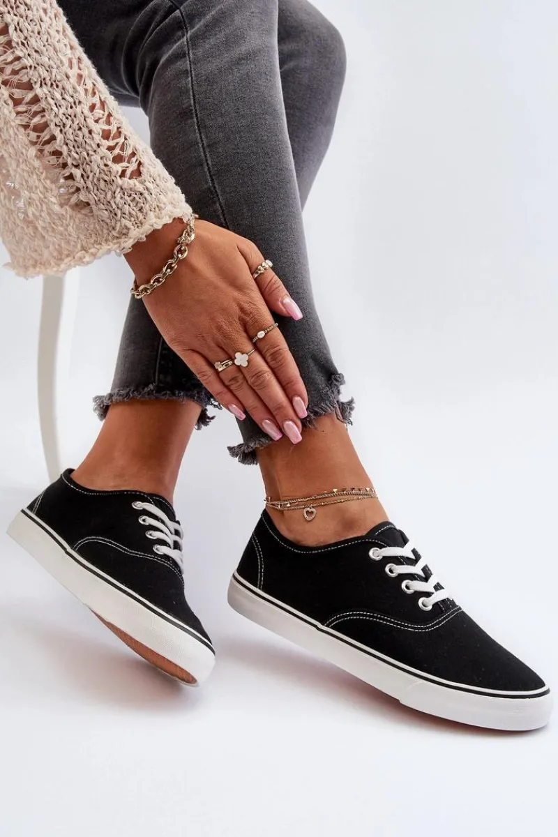 Outlet Tenisówki Trampki Damskie Klasyczne Czarne Olvali Damskie Trampki Damskie Niskie