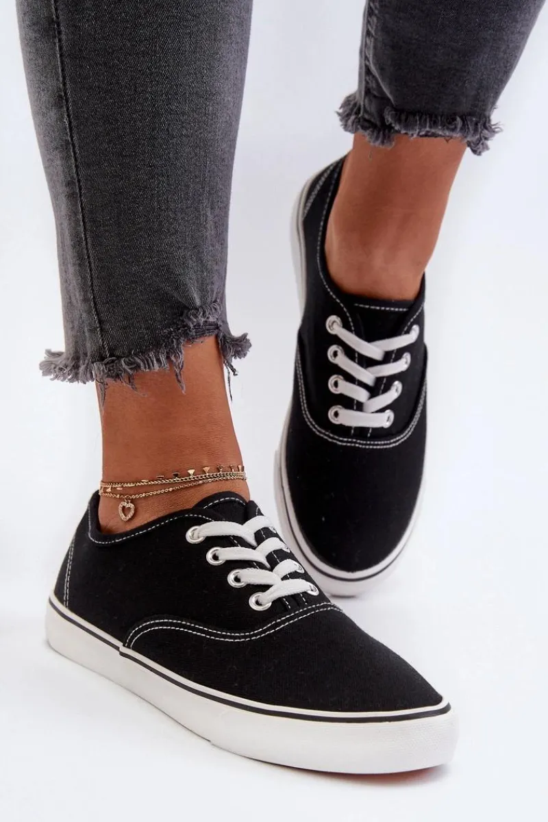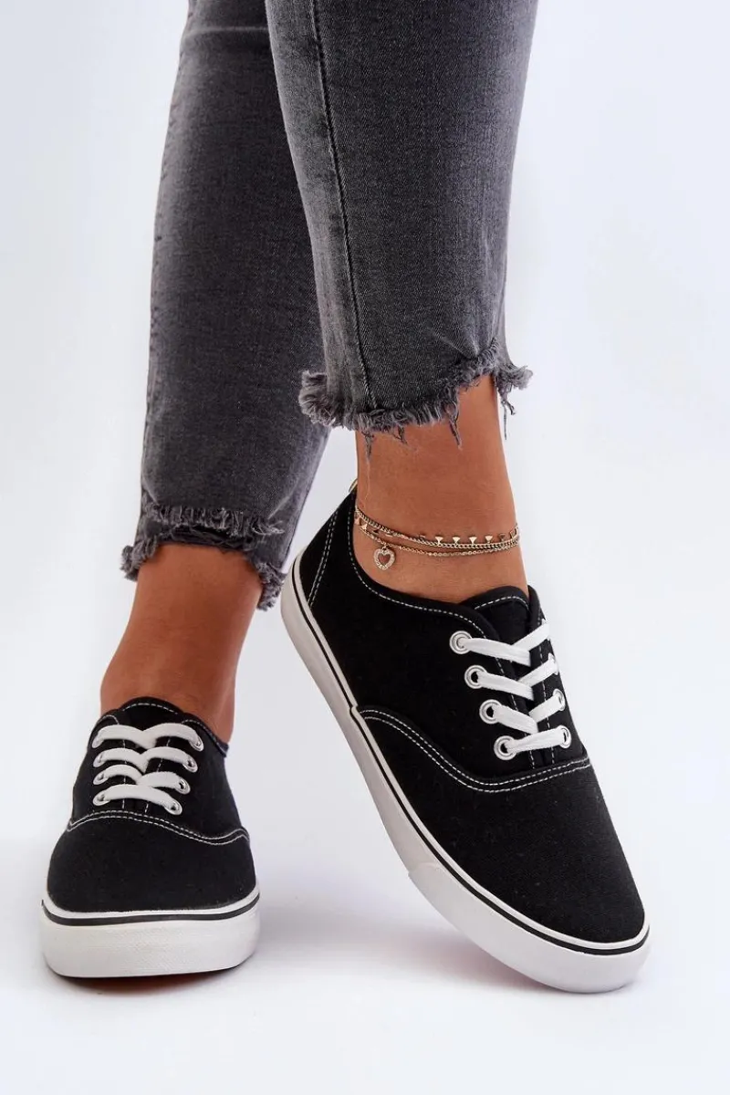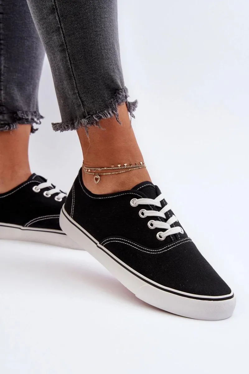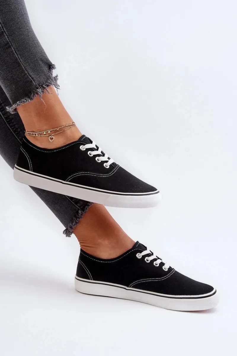 Outlet Tenisówki Trampki Damskie Klasyczne Czarne Olvali Damskie Trampki Damskie Niskie